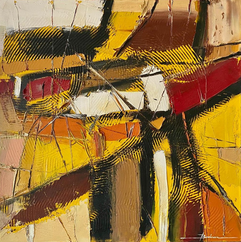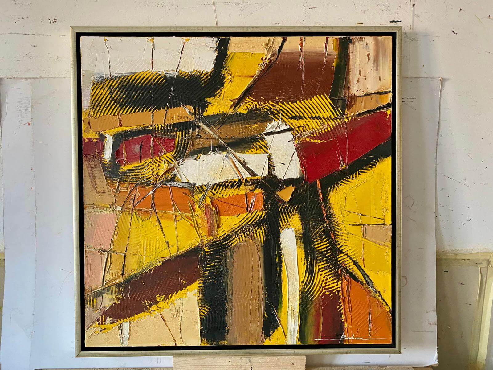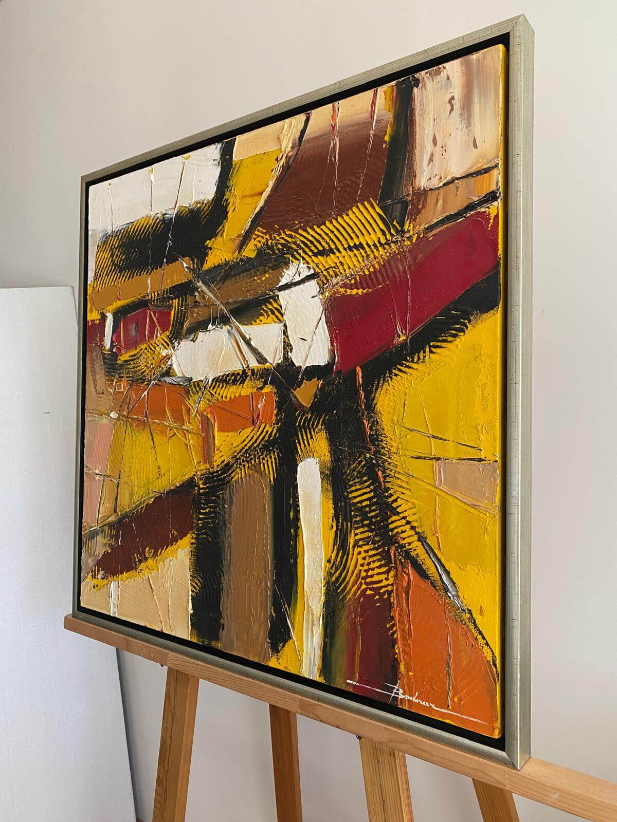 Obraz se vyznačuje výraznou barevnou kompozicí a dynamickou strukturou. Dominují zejména odstíny žluté, oranžové, hnědé a červené, které se vzájemně doplňují a kontrastují s černými a bílými liniemi. Celek působí energicky a živě, barvy vytvářejí dojem pohybu a neustálé proměny. Intenzita díla okamžitě vtahuje diváka do světa čistě vizuálních dojmů bez potřeby konkrétního námětu.