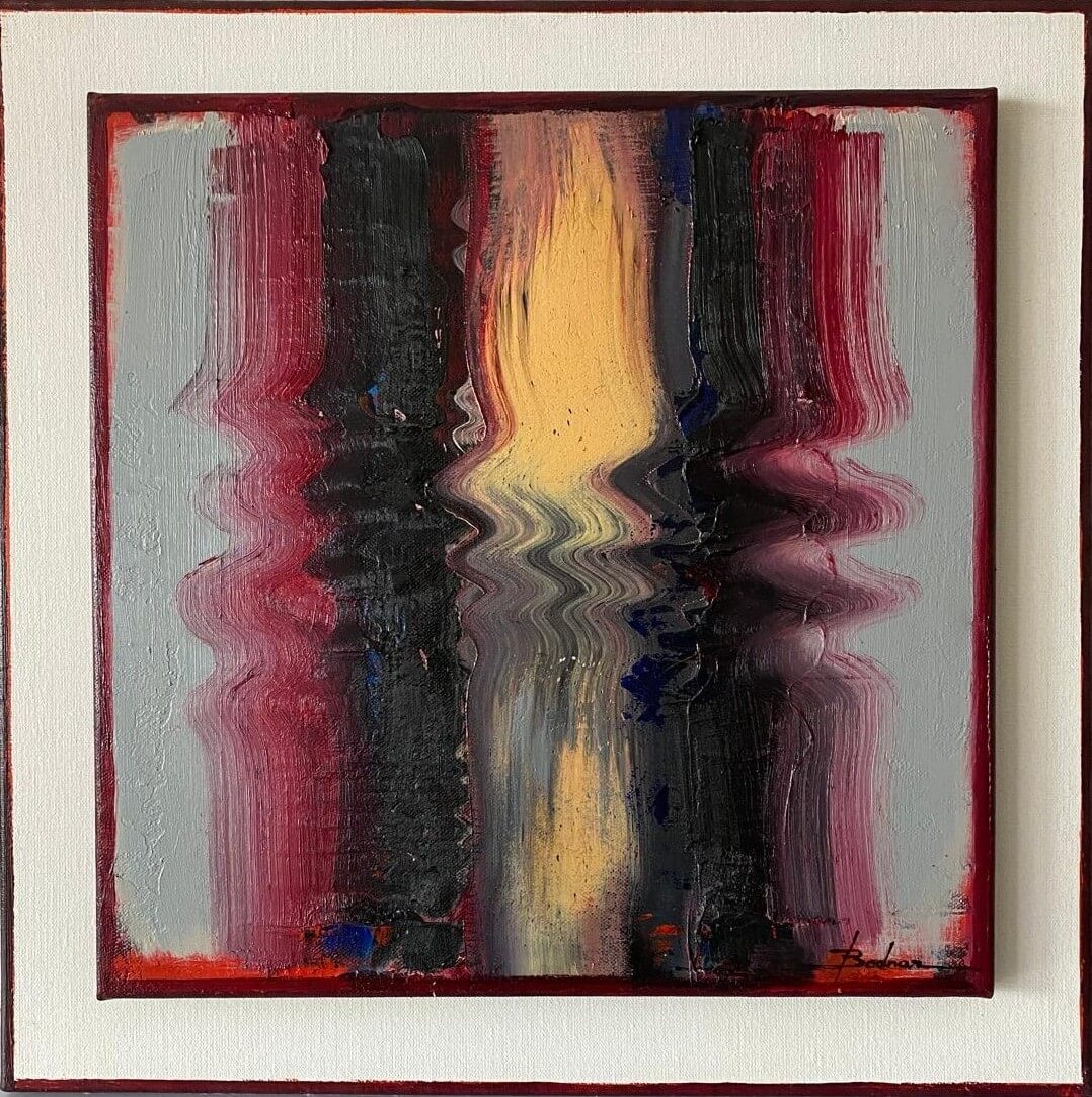 Obraz lze chápat jako vizuální metaforu energie proudící životem nebo jako symbolický záznam vnitřního světa autora. Středová osa připomíná plamen, proud světla či odraz v zrcadle a otevírá prostor pro osobní interpretaci diváka.