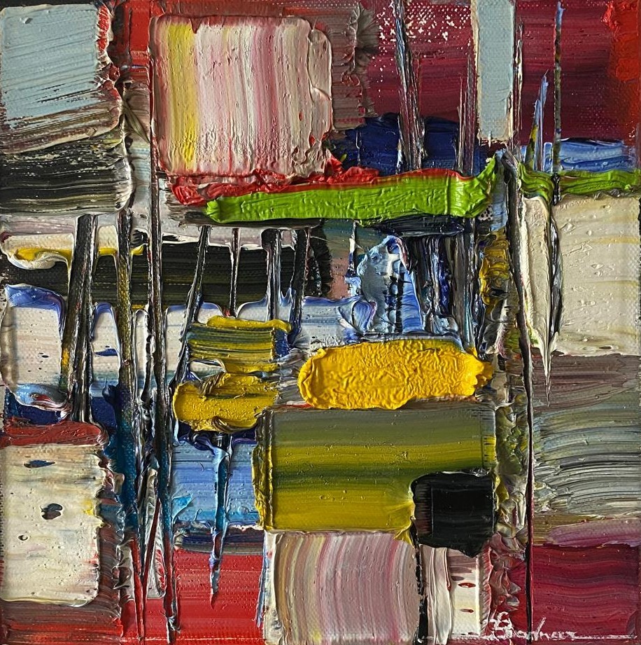 Obraz přináší barevně bohatou a strukturovanou kompozici, v níž se setkává energie s klidem. Malíř nanáší pastózní vrstvy barev, které vystupují z plátna a dodávají povrchu reliéfní charakter. Zřetelné tahy štětce i špachtle zdůrazňují dynamiku a pohyb.