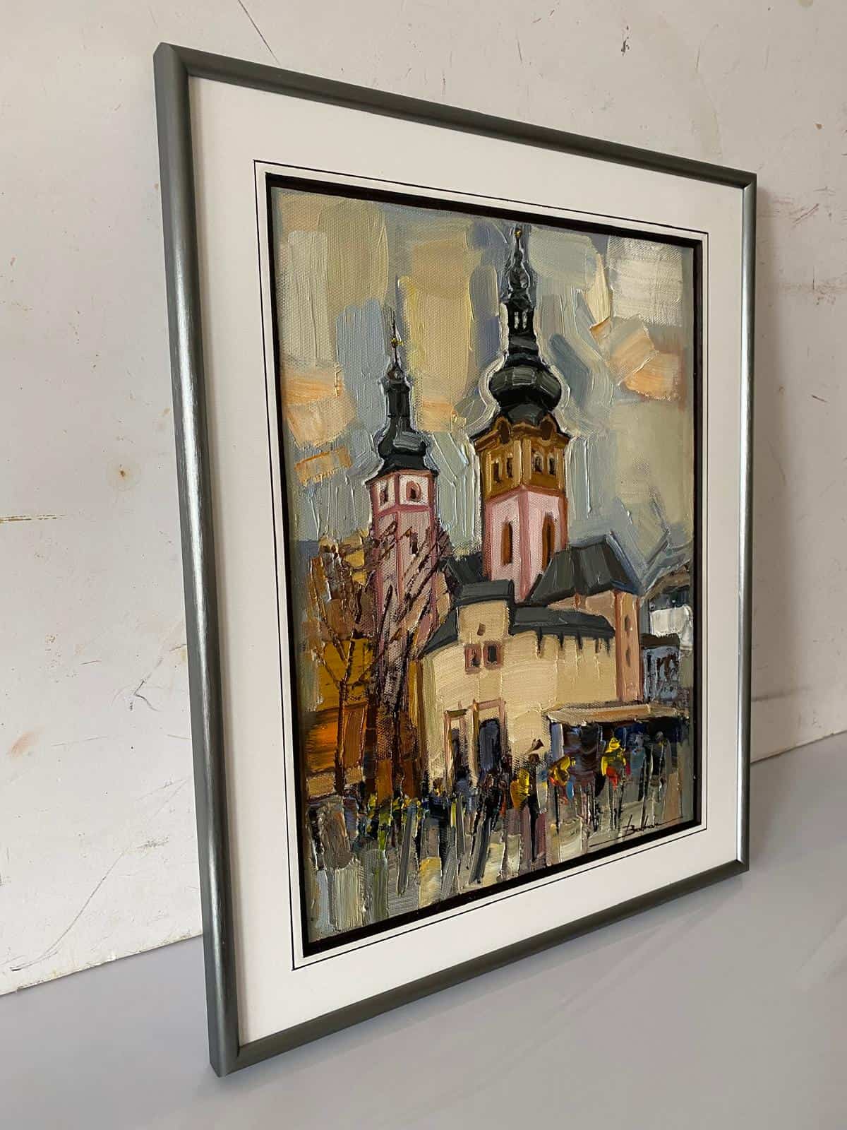 Kompozice zdůrazňuje hru světla a stínu. Světlé vrcholy budov vystupují z jemně rozmazaného pozadí a vytvářejí pocit klidu a hloubky. Barevná paleta, kombinující teplé zemité tóny s chladnými vzdušnými tóny, evokuje dojem ranní mlhy nebo podvečerního zabarvení horizontu. Dynamika štětcového tahu vyjadřuje vědomí pohybu – město jako živý organický organismus.