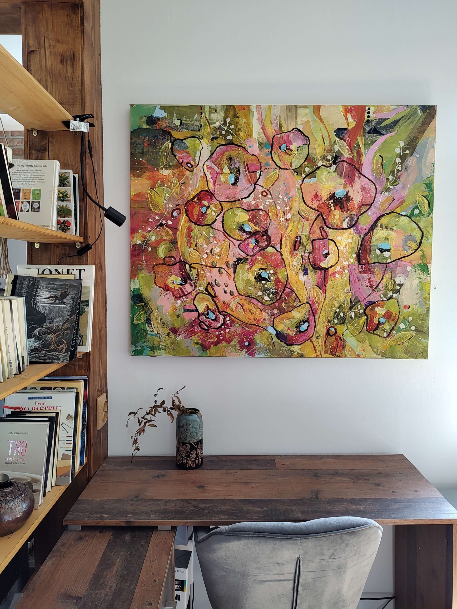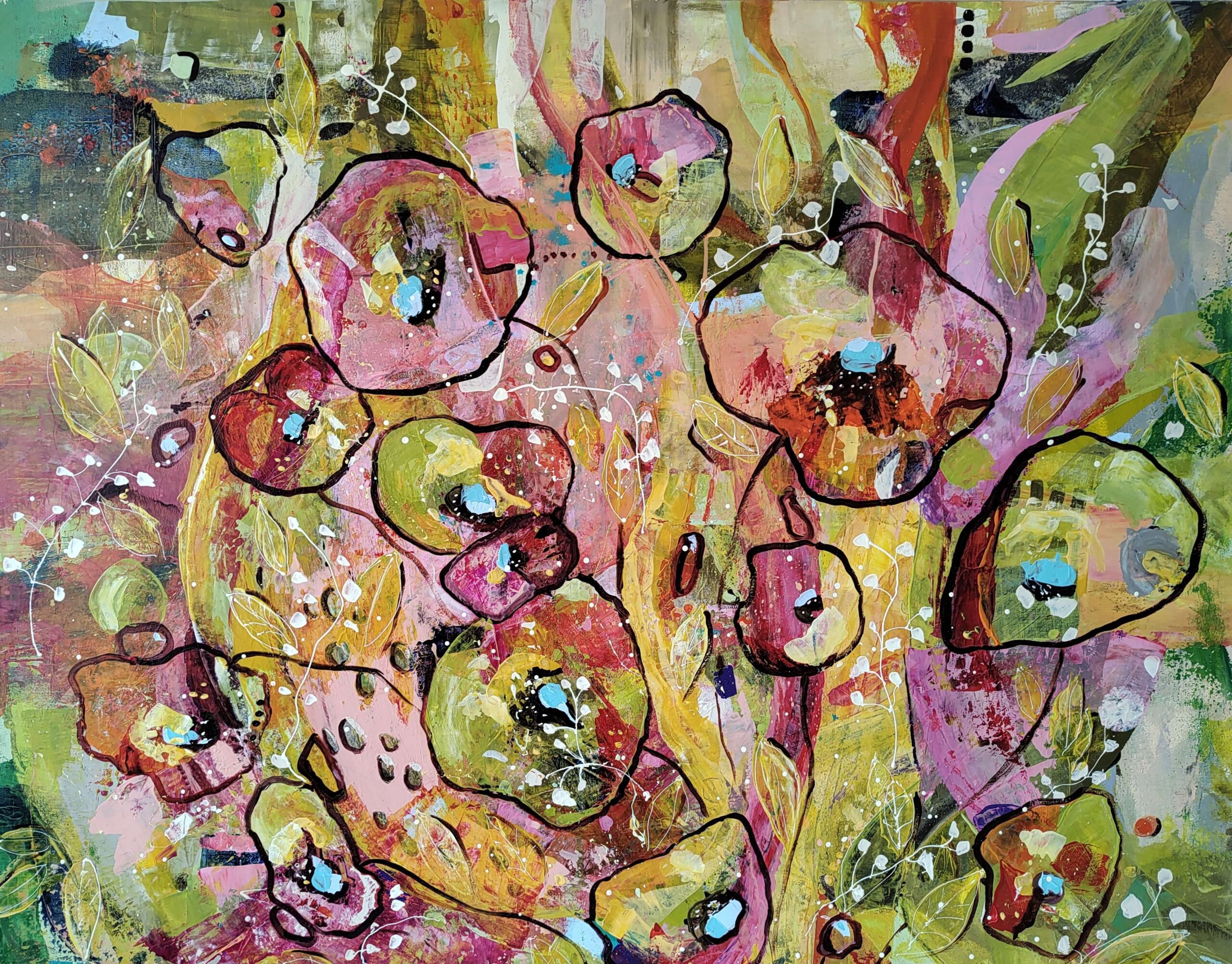 Ráda se kochám pohledem na květy v mé zahradě, obdivuji dokonalost jejich jednotlivých částí, to, jak přijímají sluneční paprsky a lákají svou vůní… pak už pracuje má fantazie a květy mi tančí po plátně jako malé baletky v lehkých bublinkových šatičkách… a já se snažím zachytit okamžik jejich krásy…