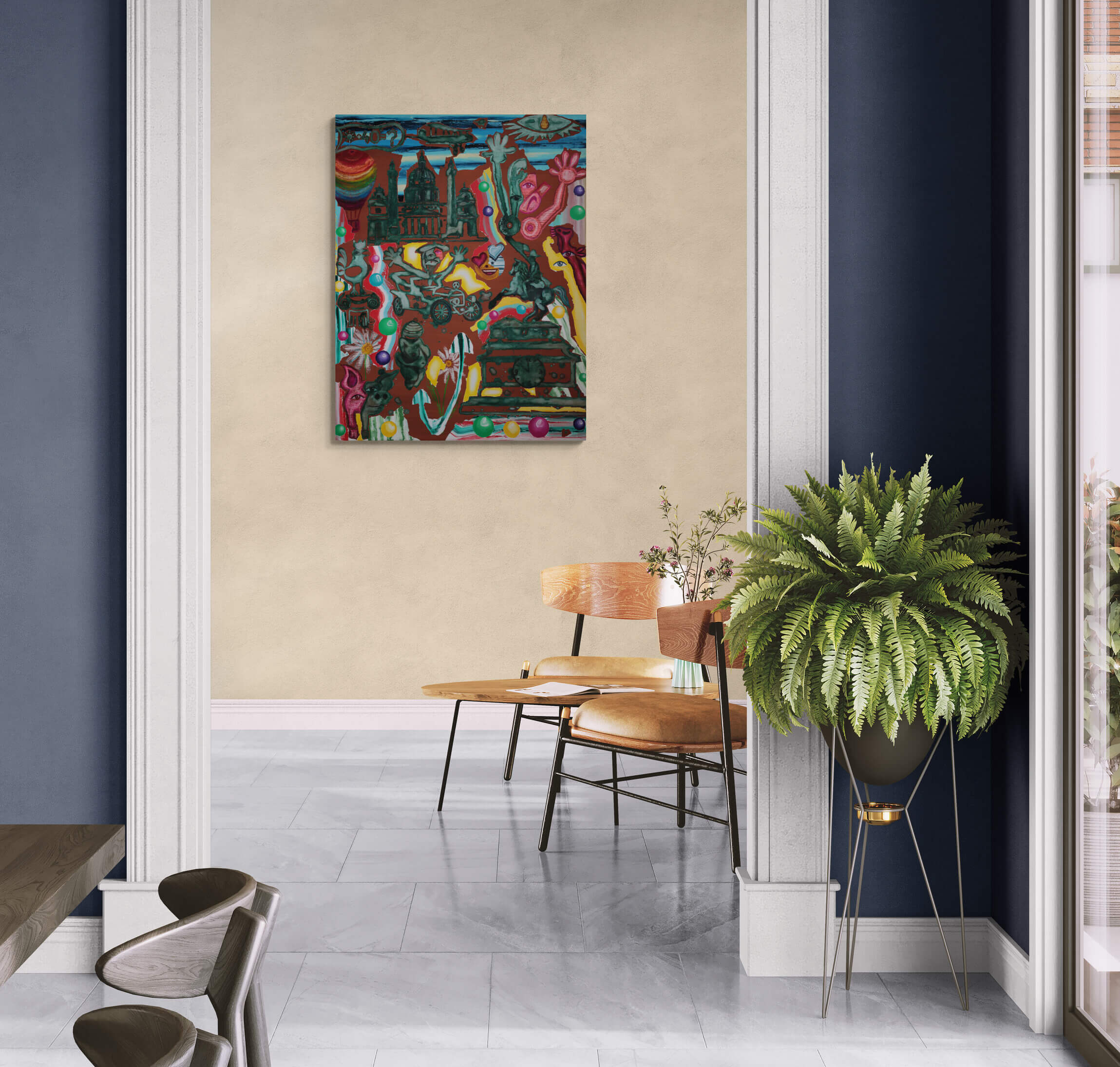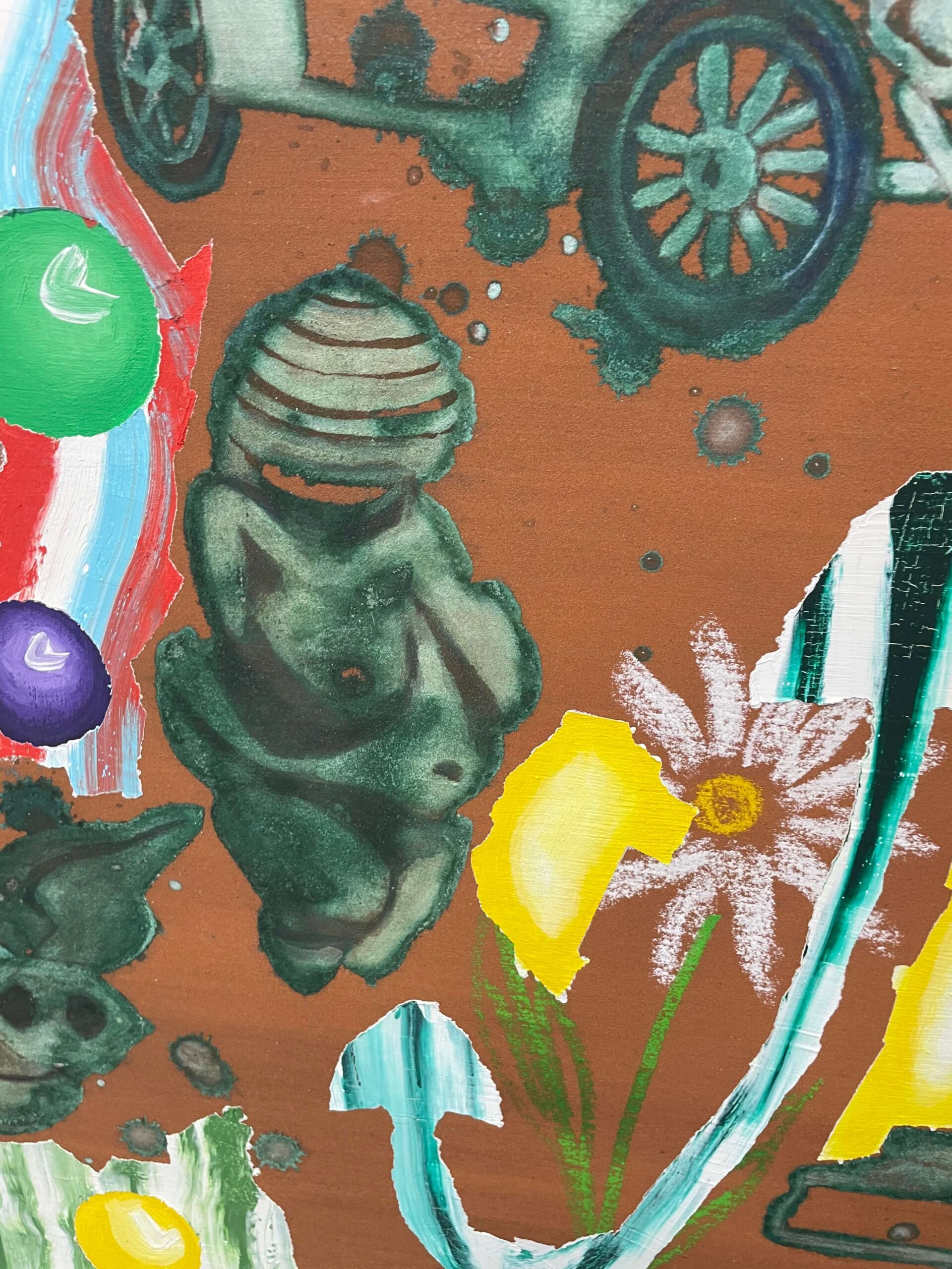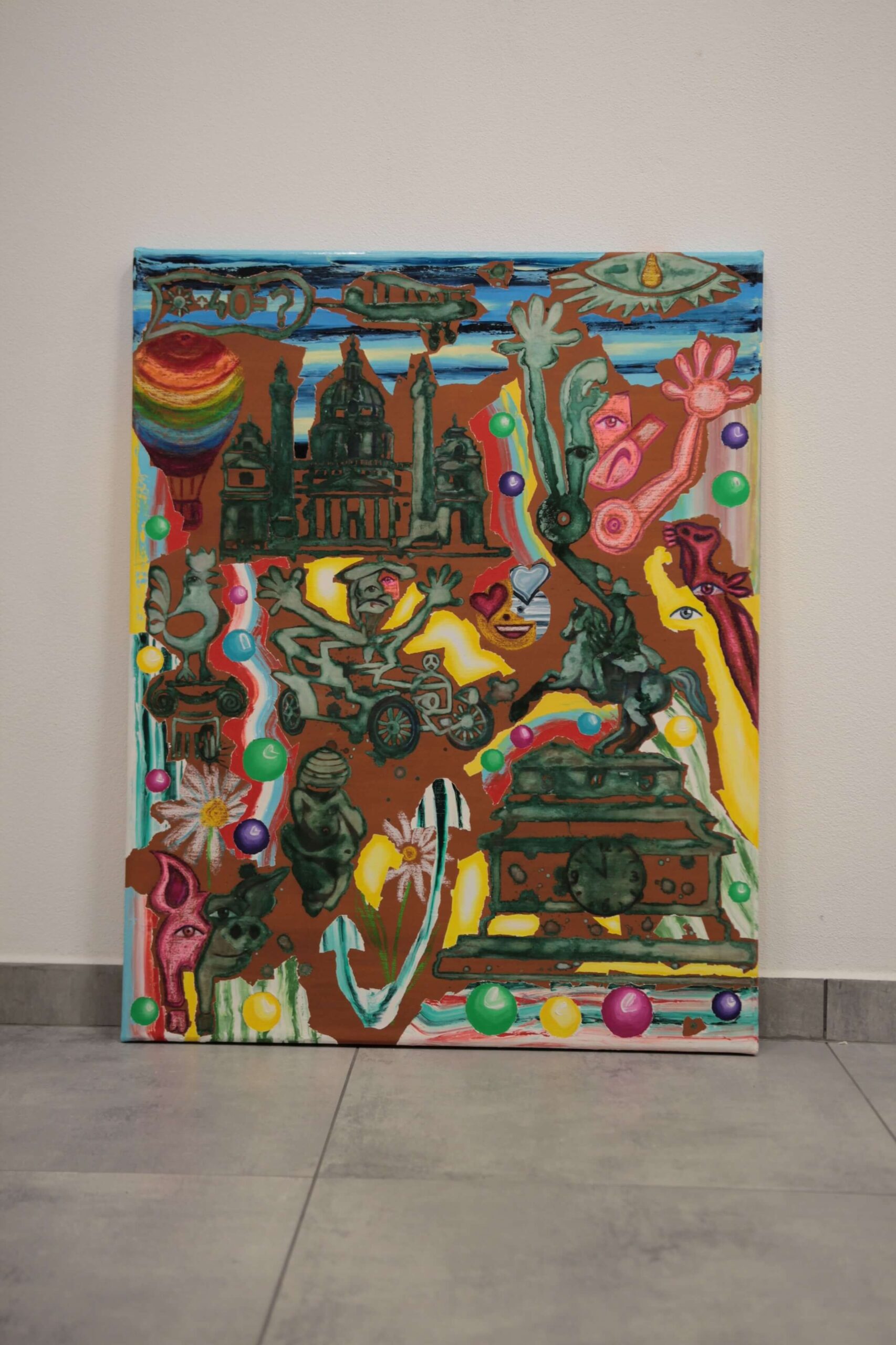 Mapa zde neslouží k orientaci v prostoru, ale k hledání orientace v čase (osobním i univerzálním). Abstraktní struktura obrazu vytváří pole pro introspekci, kde se jednotlivé vrstvy stávají stopami prožitků, vývoje a neustálé proměny. Dílo tak funguje jako vizuální otisk času v jeho počátečním, formujícím se stadiu.