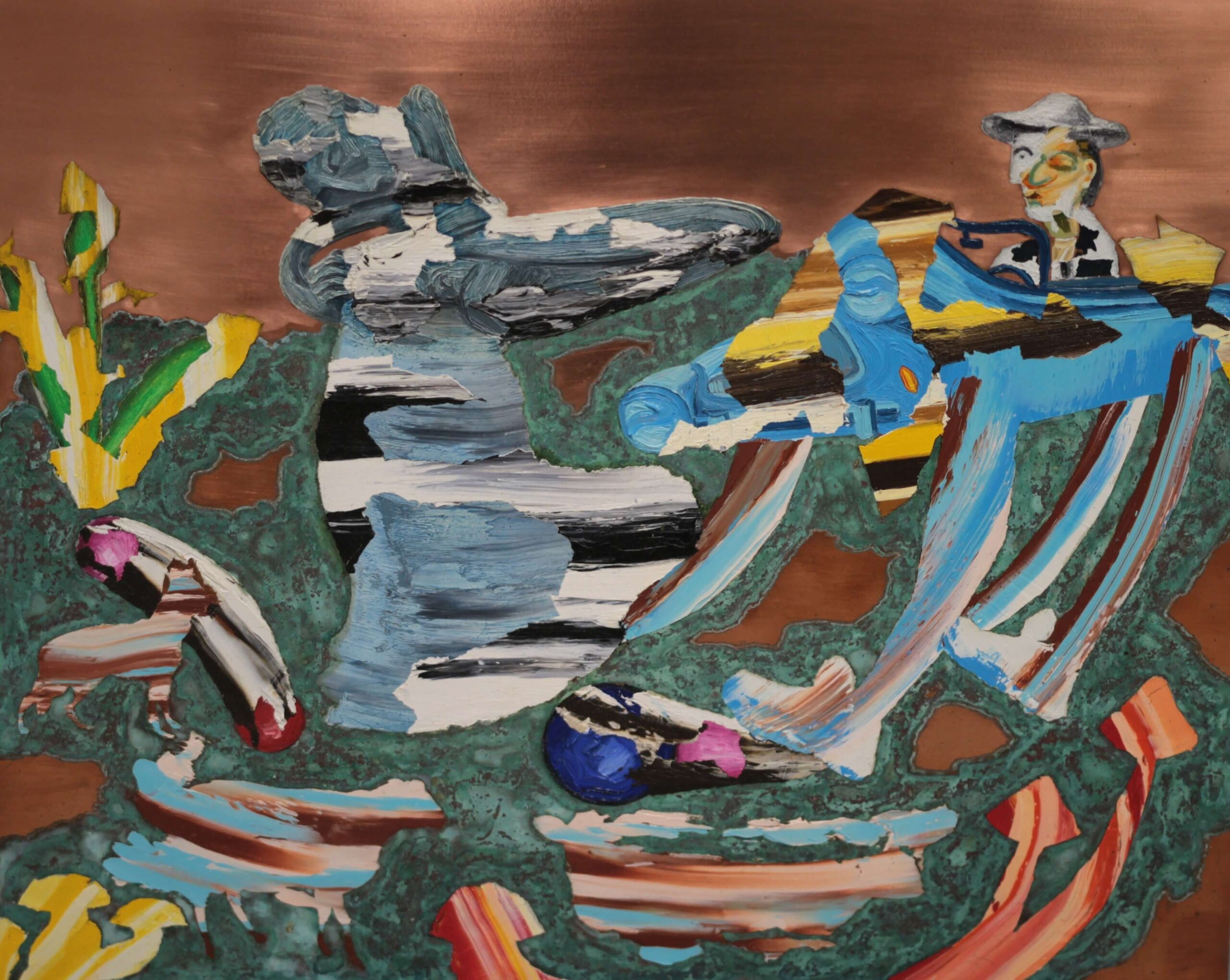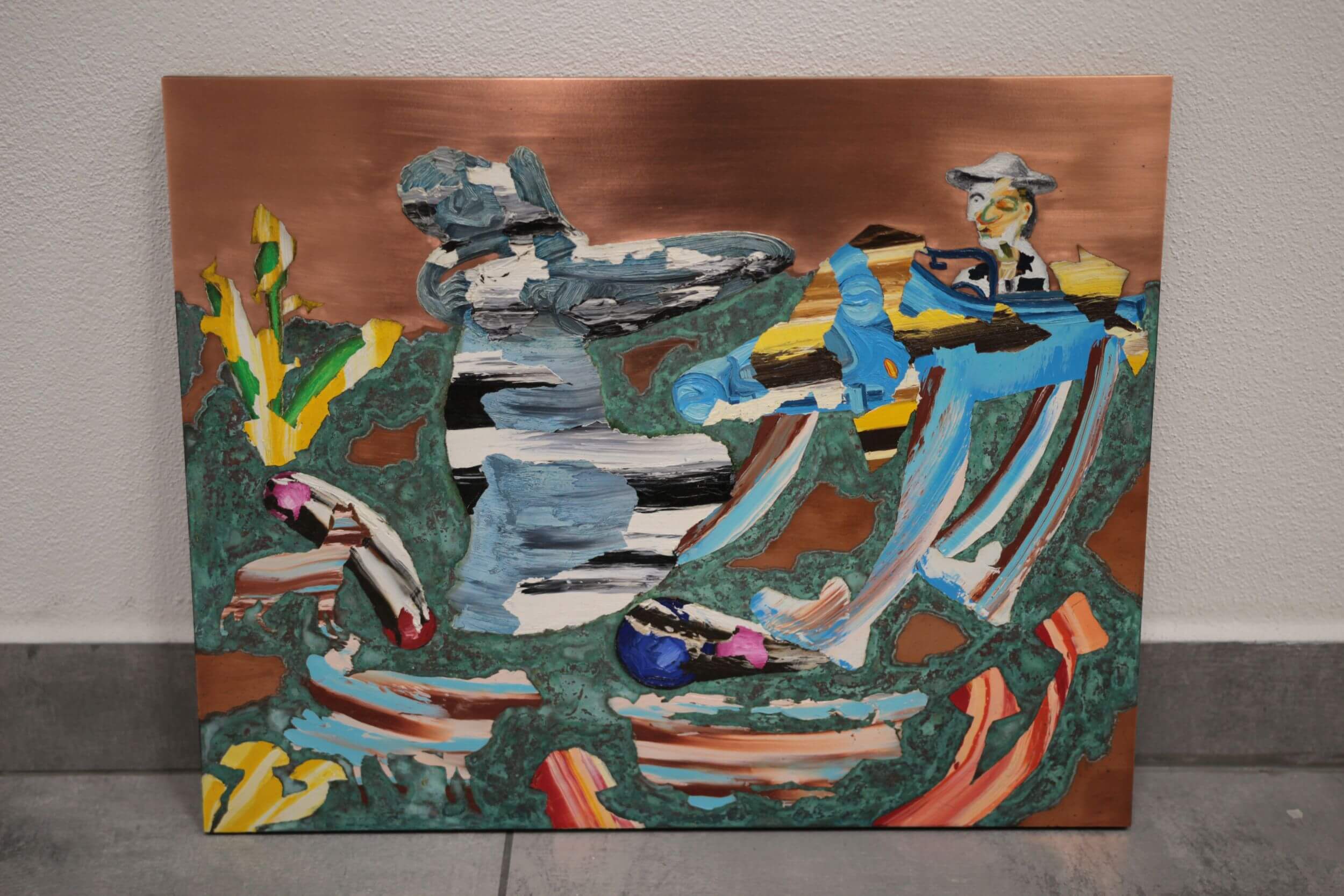 V „Časosběrné mapě III“ se opět setkáváme s Ďurčekovým typickým experimentováním s chemickými reakcemi, oxidací, pigmenty a alternativními podklady. Povrch díla nese stopy eroze, záznam pohybu a biologického času, jako by se obraz sám zapisoval – vrstvu po vrstvě, podobně jako sediment v přírodě či lidská paměť.