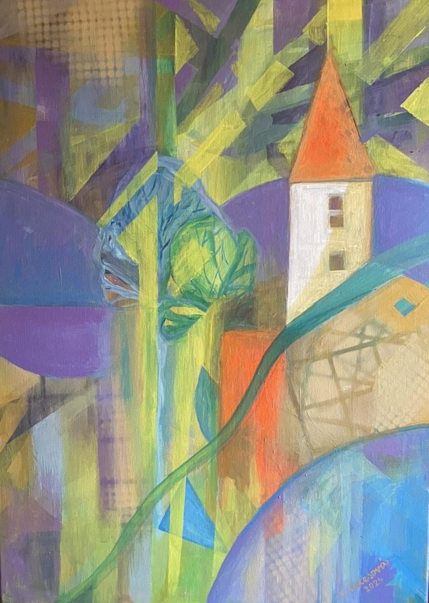 Tichá pouť krajinou, v níž se světlo postupně prodírá stíny. Jemné linie a proměnlivé barvy naznačují pohyb. Jako by divák kráčel neznámou cestou, veden vnitřním pocitem víry a očekávání.