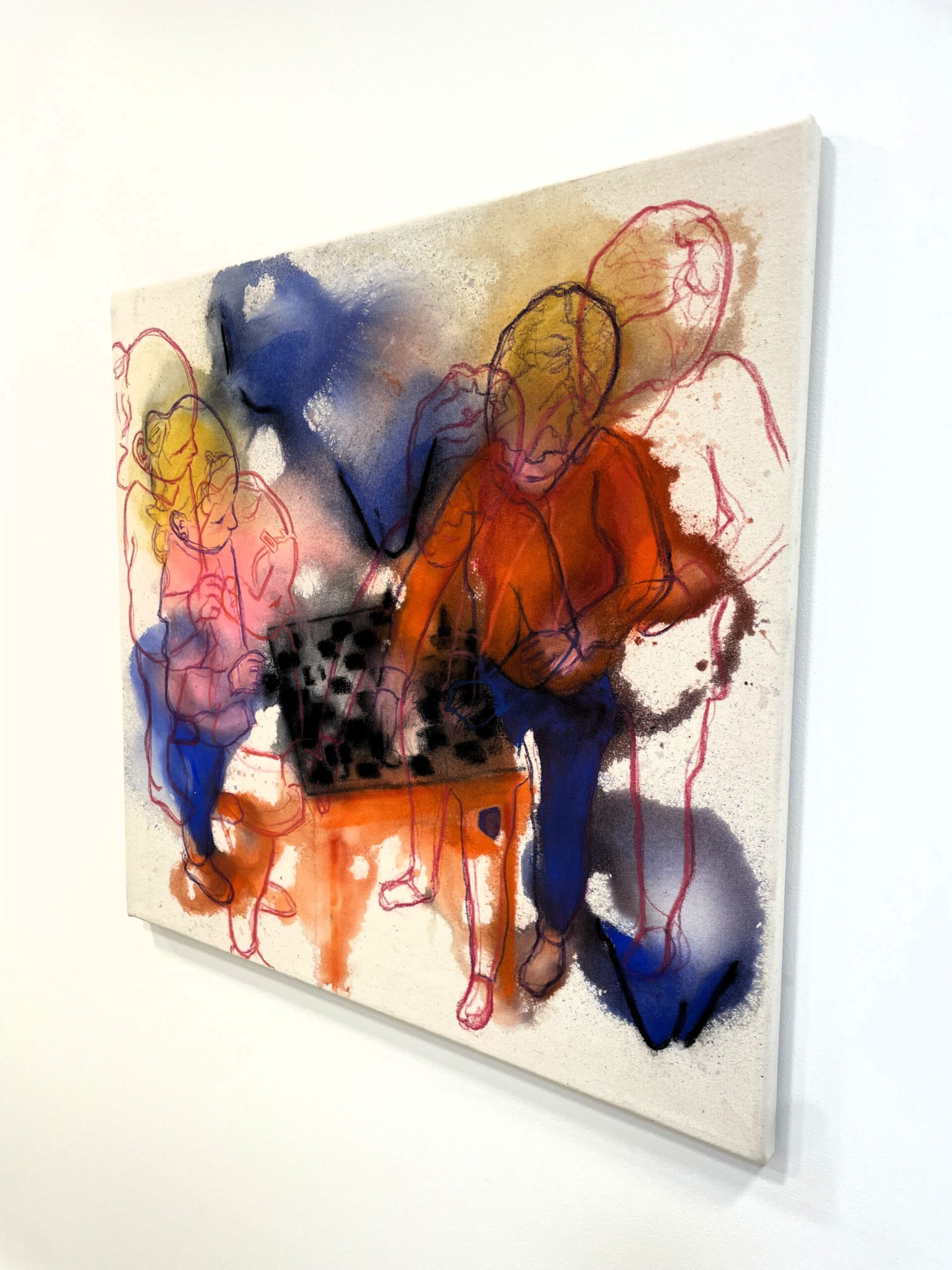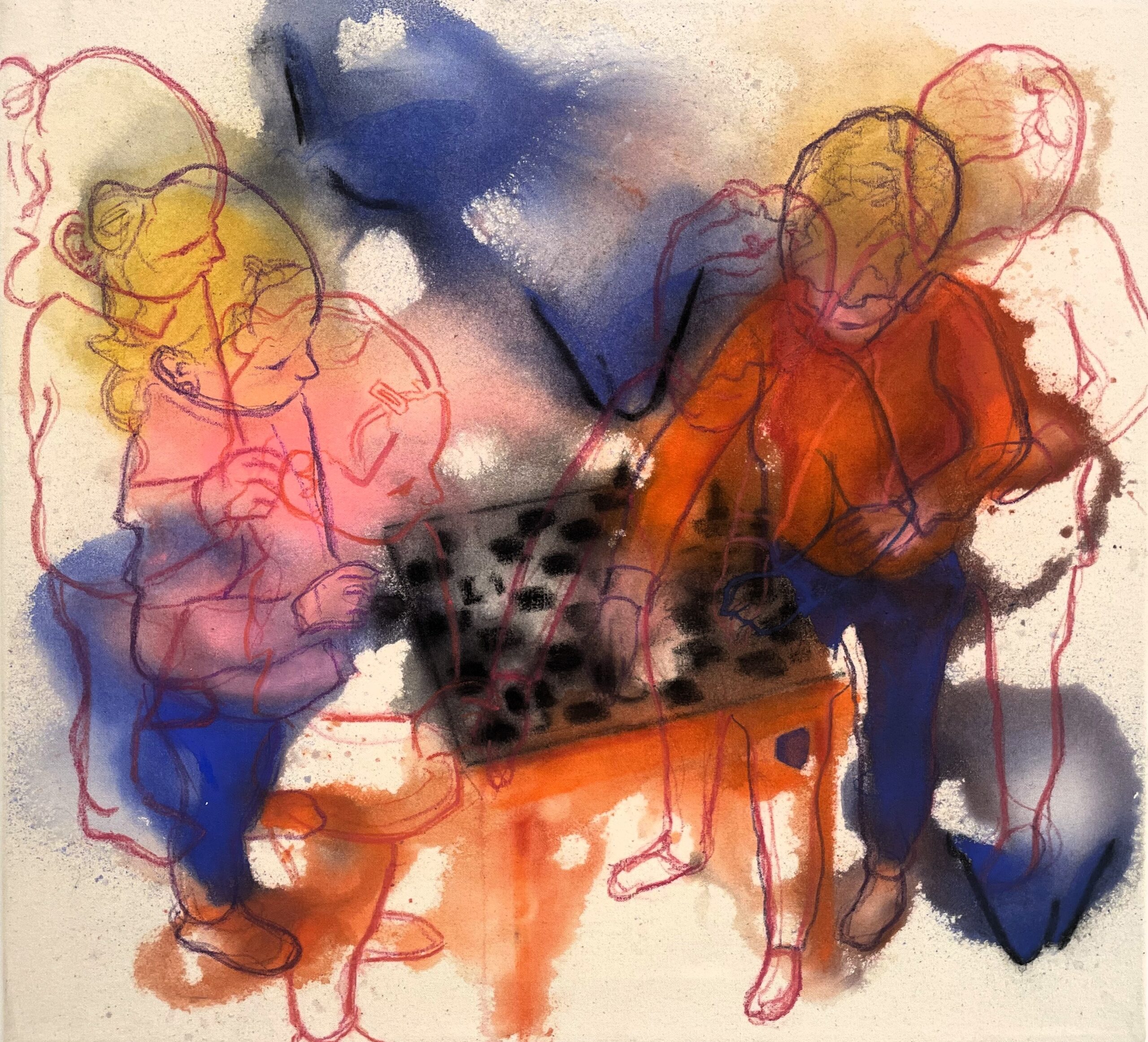 Obraz zachycuje okamžik dětského soustředění a radosti při hře dámy. Děti se pilně koncentrují, což symbolizuje trpělivost, strategické myšlení a radost z učení se novým věcem. Barevné a jemné detaily obrazu dodávají scéně hravost a živou energii. Kompozice podporuje pocit sounáležitosti, přátelství a radostně stráveného společného času.