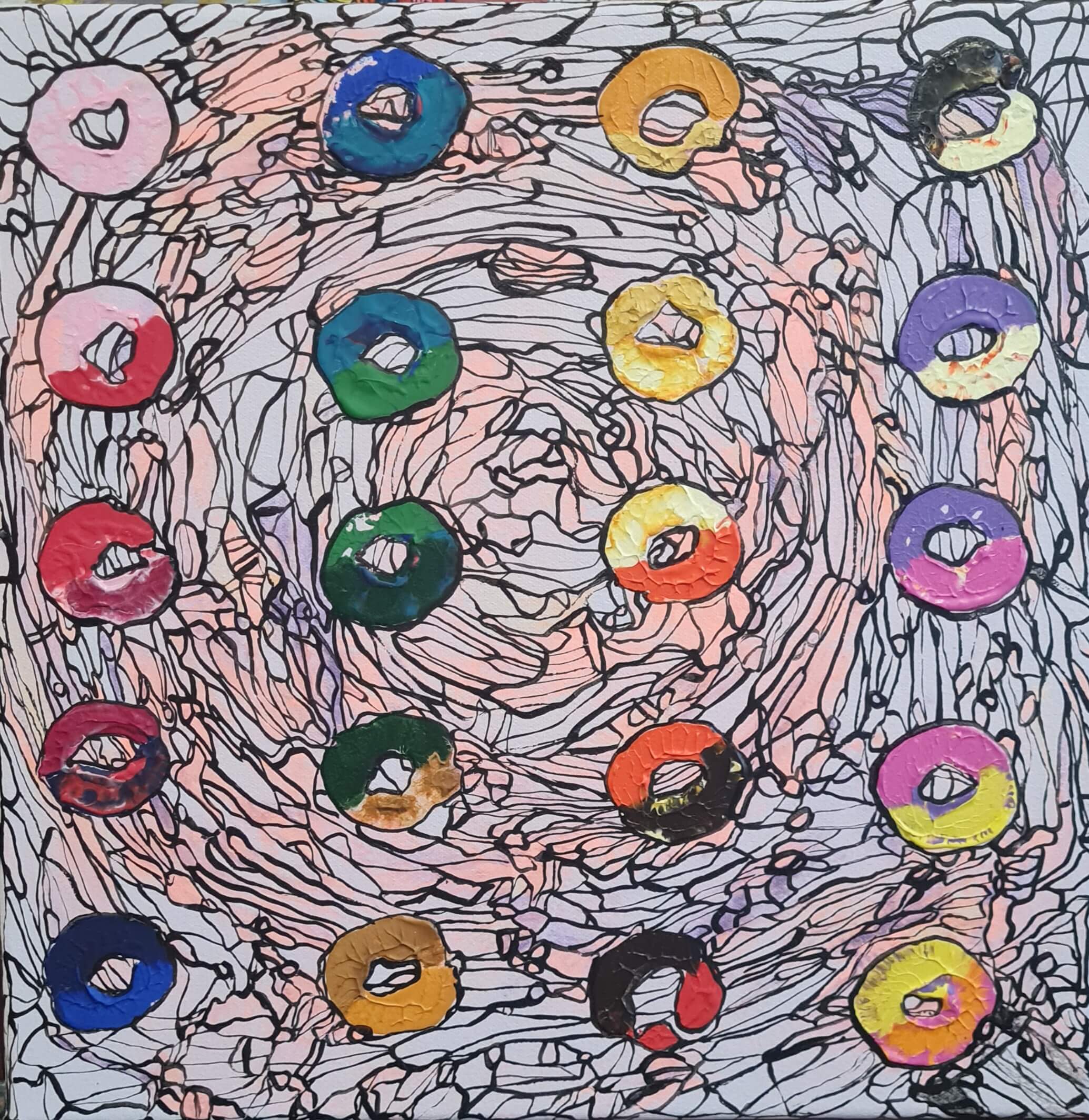 „Fruti Loops“ je hravá a energická kompozice, která prostřednictvím dvaceti barevných plodů vytváří obraz rytmu a cykličnosti. Každý plod je jedinečný svou barvou, tvarem i výrazem. Dohromady však tvoří harmonickou ovocnou smyčku, symbolizující pestrost života a radost z jeho rozmanitosti.