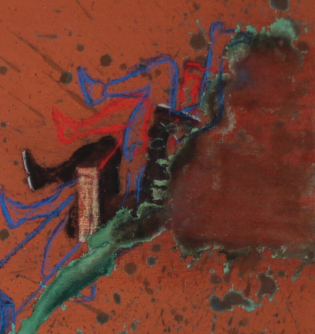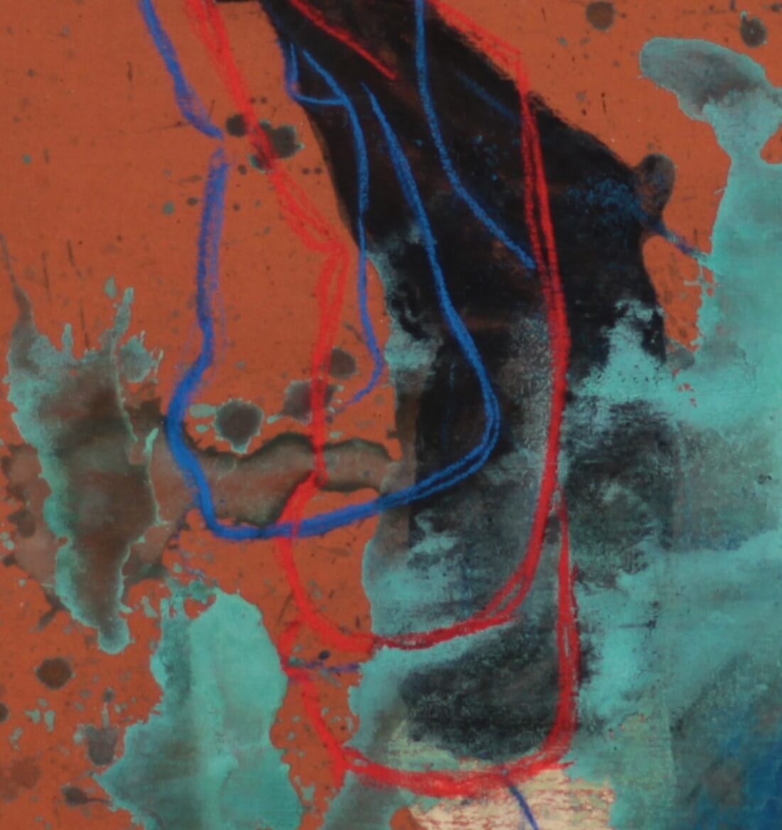 Barevné zásahy připomínají výbuch energie či stopy pohybu a dodávají kompozici dramatickou intenzitu. Tyto struktury zároveň naznačují vnitřní napětí mezi hravostí a nečekanou ztrátou kontroly, kterou houpačka v sobě nese.