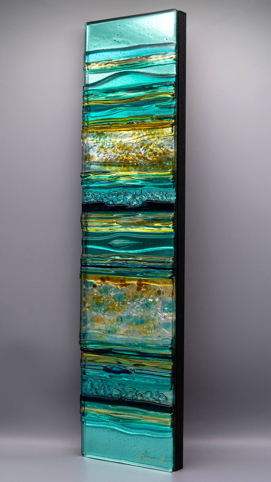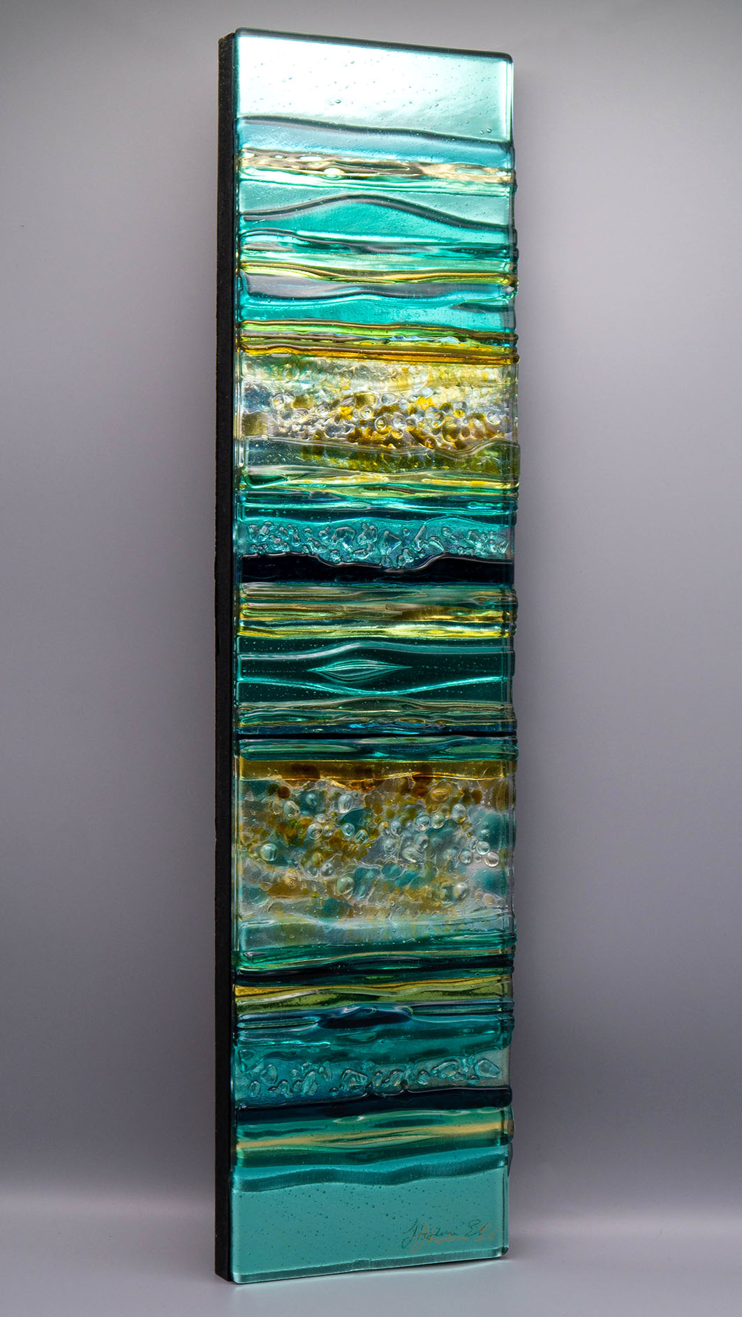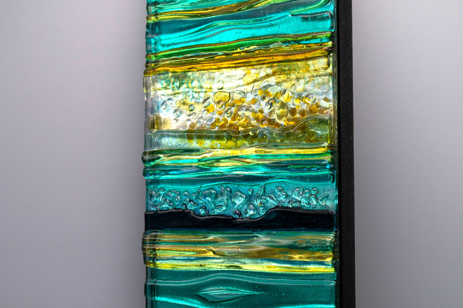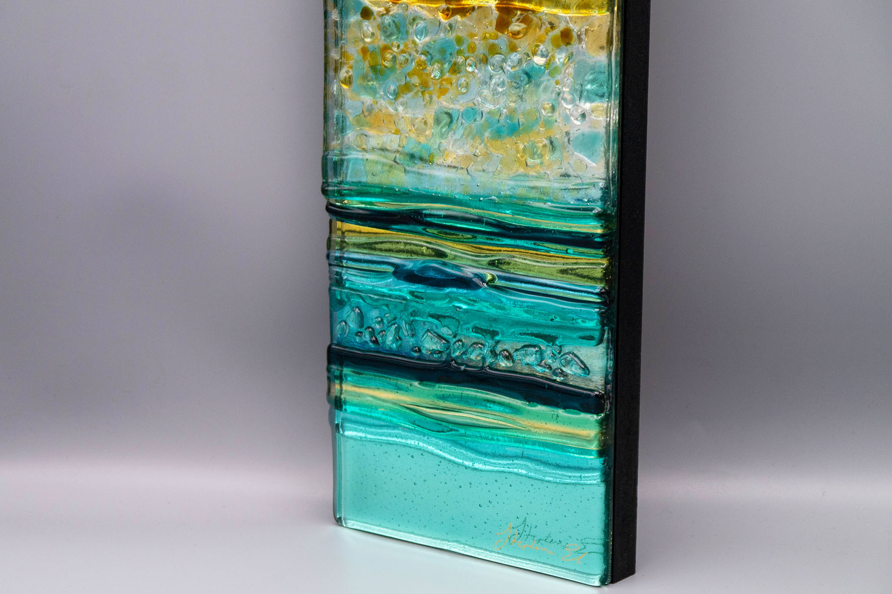 Tento třpytivý skleněný panel je inspirován jarními procházkami po pobřeží.