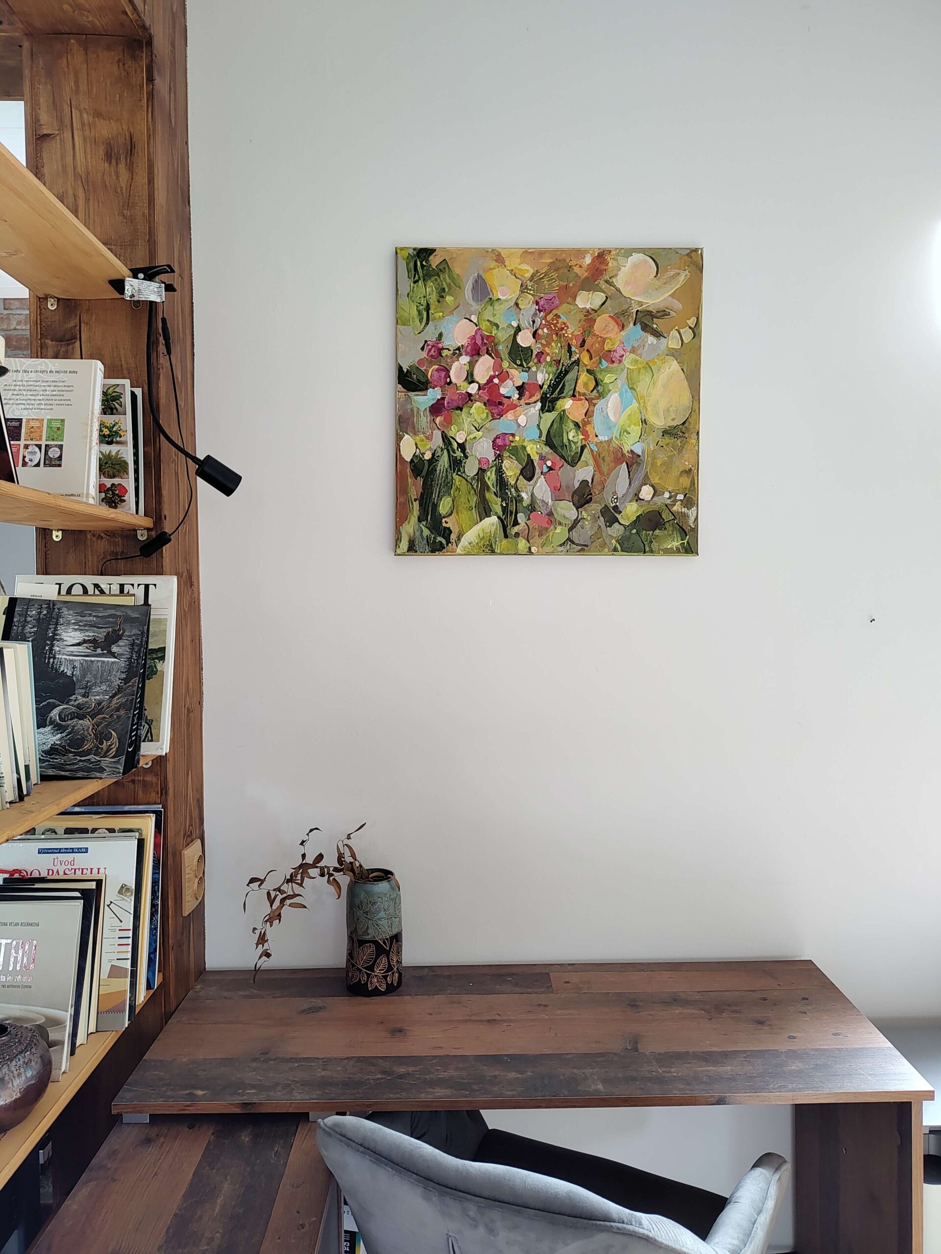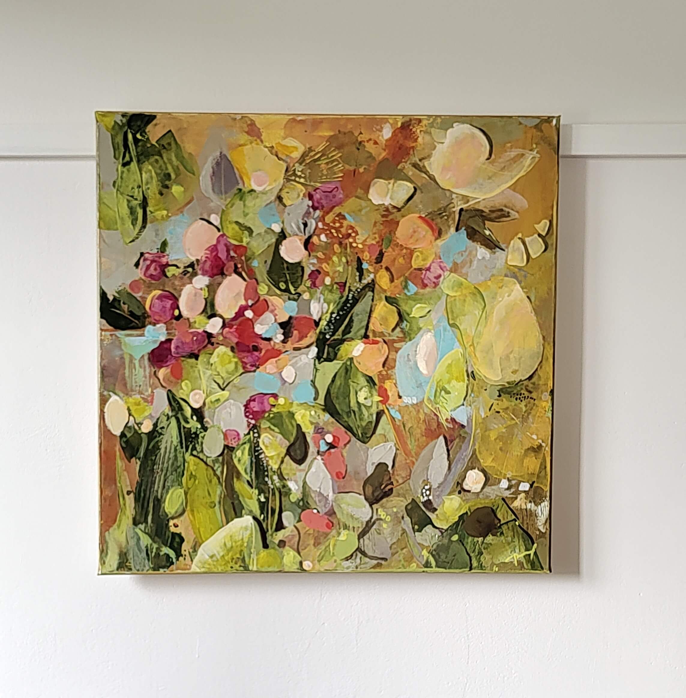 Miluji jaro… ty barvy, které jsou tak nové, svěží a čisté, ta vůně nových květů, kdy neexistují ostré linie a vše se plynule přelévá, jako by se květy a listy rozpínaly a prolínaly ve vánku. Celkový dojem je klidný a mírumilovný, plný svěžesti a energie, jako by divák vstoupil do smyslového zážitku jarního probuzení v tajemné, ale přívětivé džungli. Barvy jsou matné, s jemným nádechem pastelové textury, což podtrhuje pocit lehkosti a vzdušnosti.