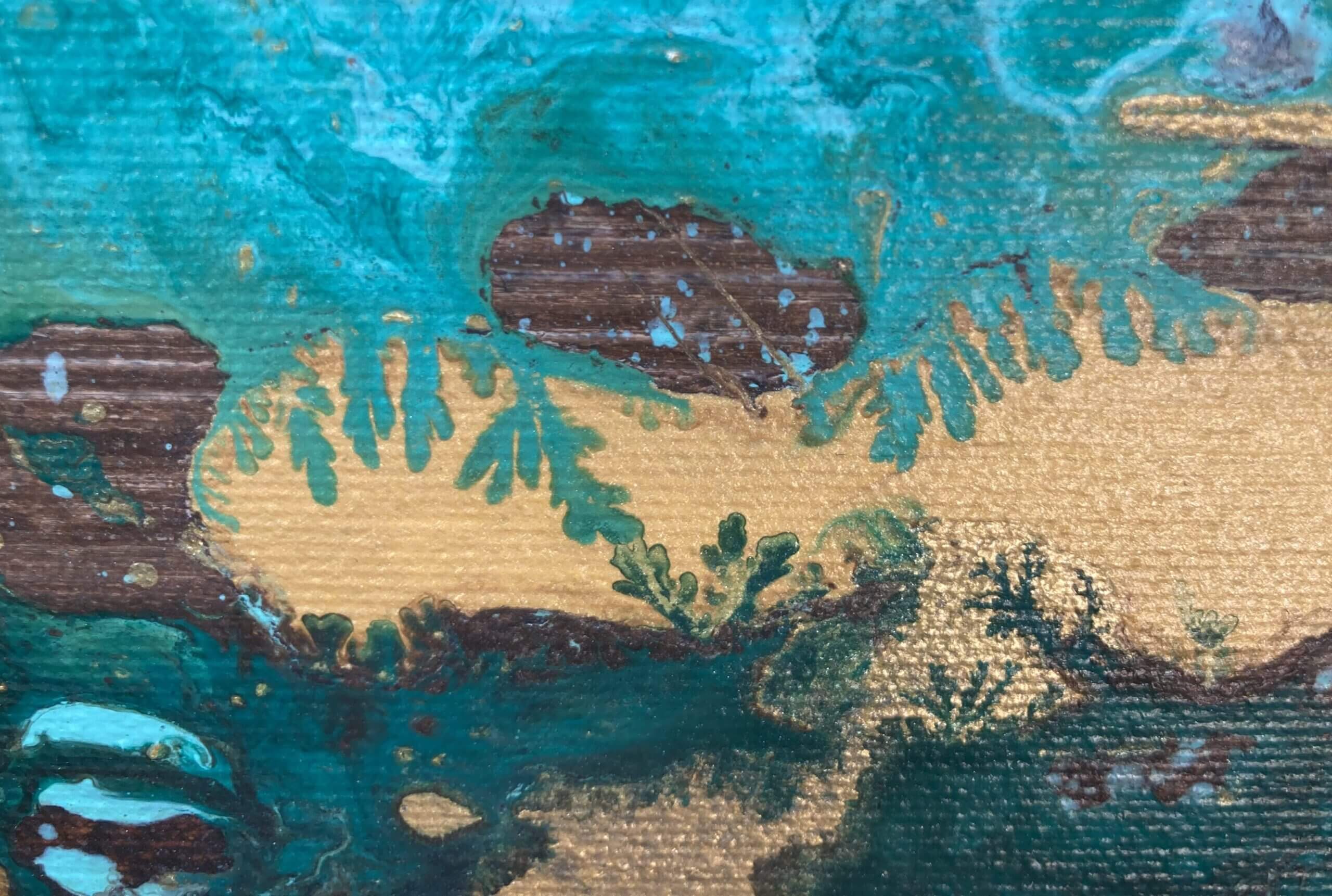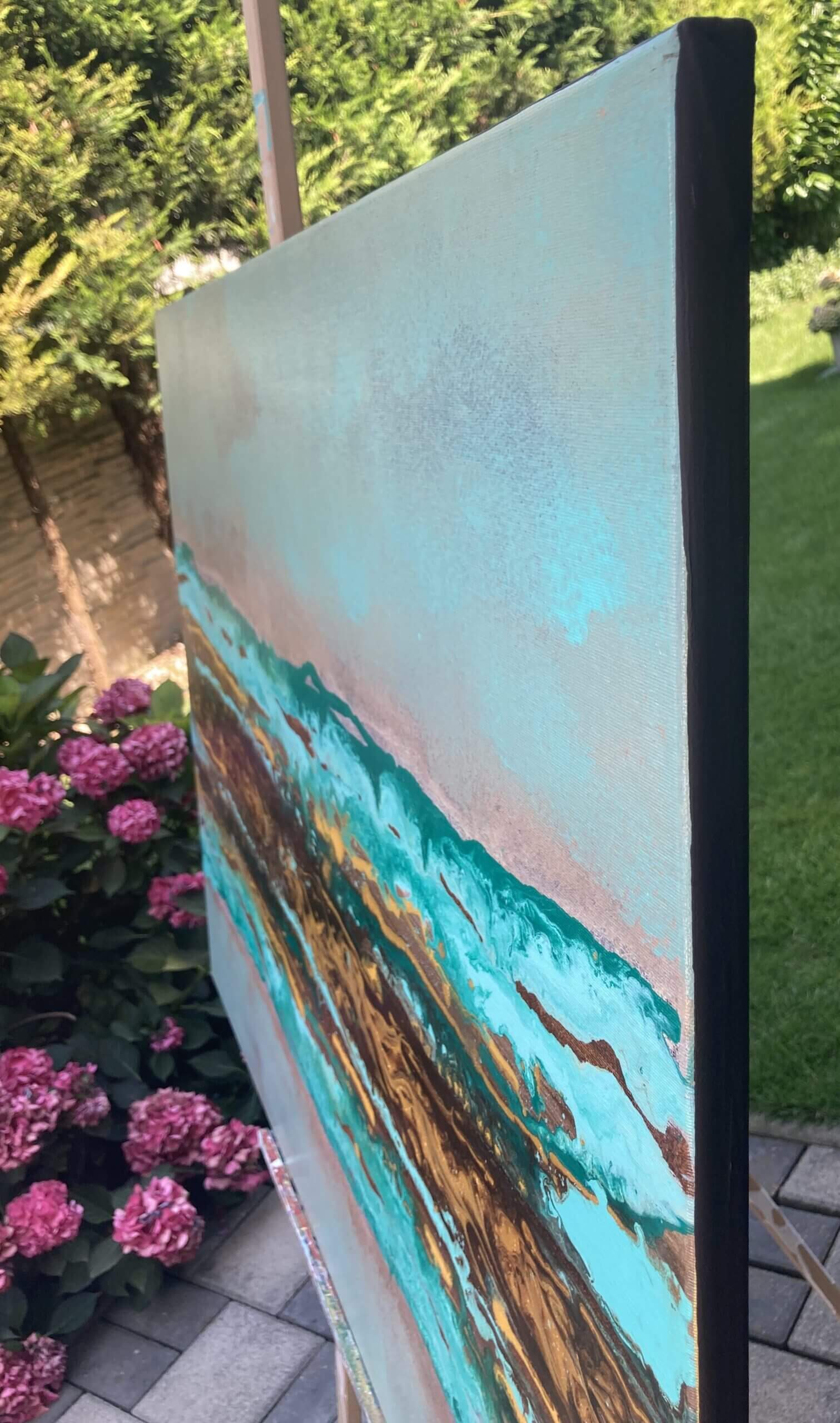 Obraz zachycuje dynamiku a energii přírody prostřednictvím akrylových barev. Kompozice vyvažuje tvary a barvy tak, že každý tah štětce umocňuje dojem síly a pohybu. Umělec vrstvením barev a textur vytváří hloubku a komplexnost, díky čemuž divák může objevovat různé přírodní elementy a jejich vzájemné působení.