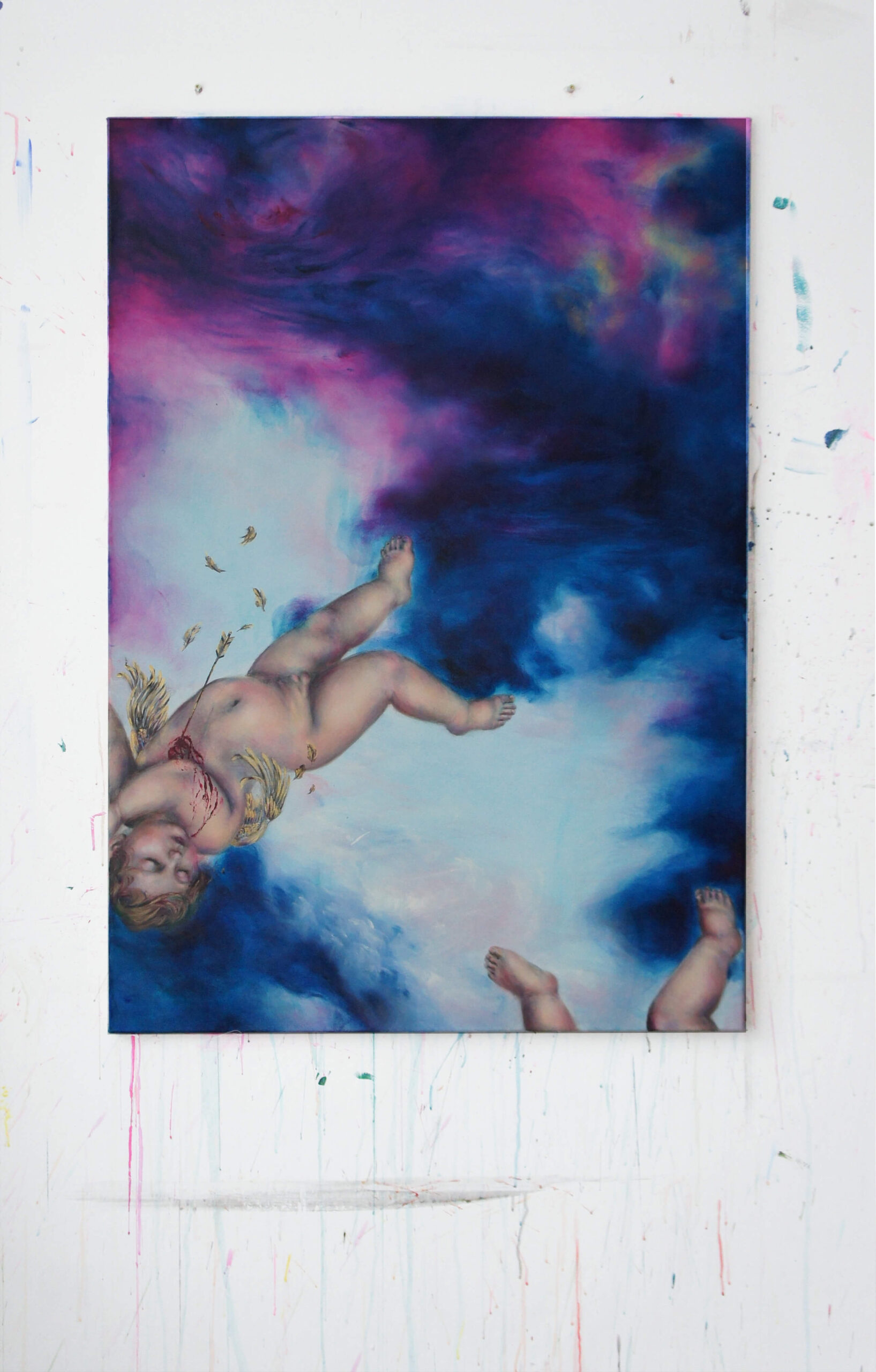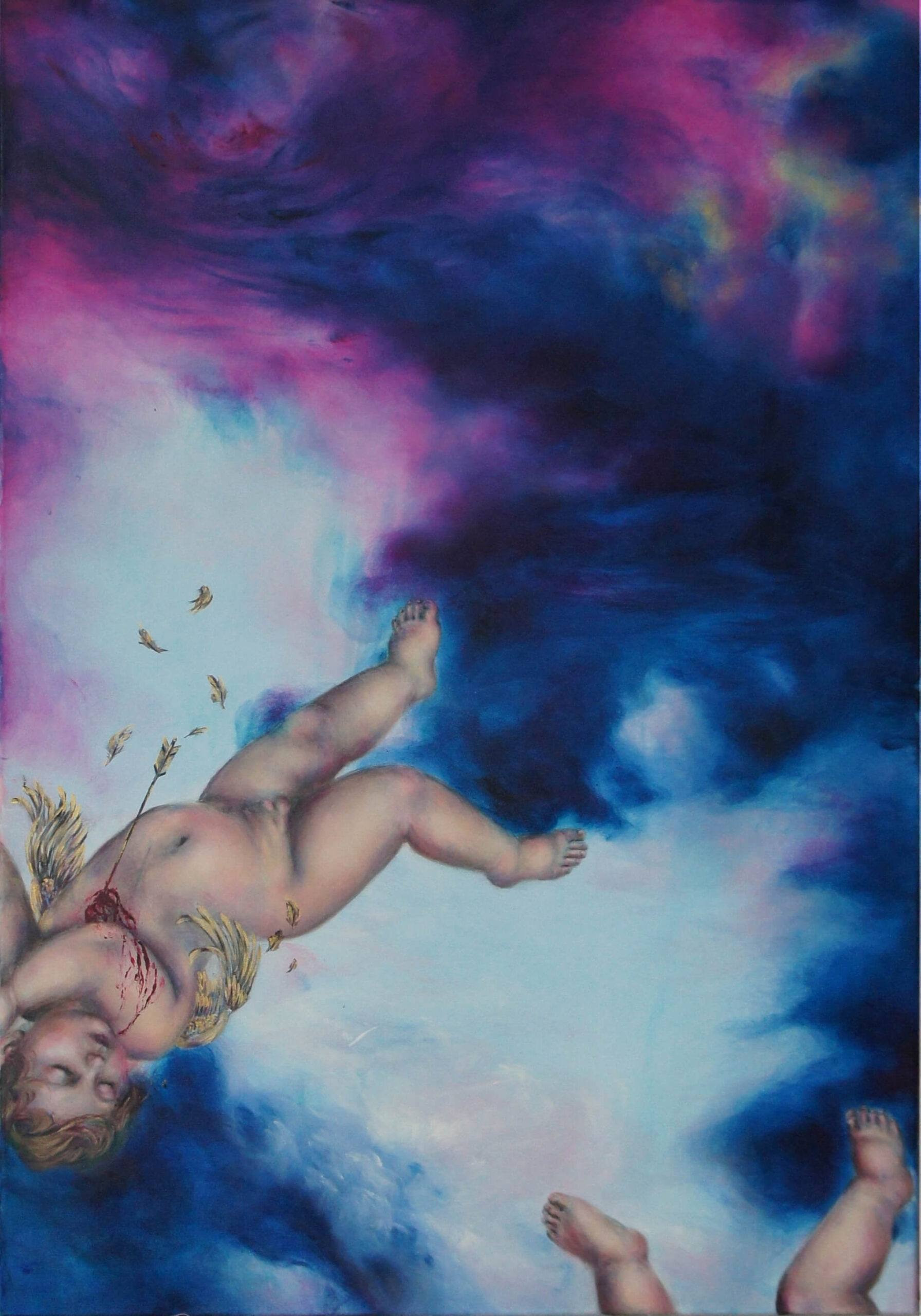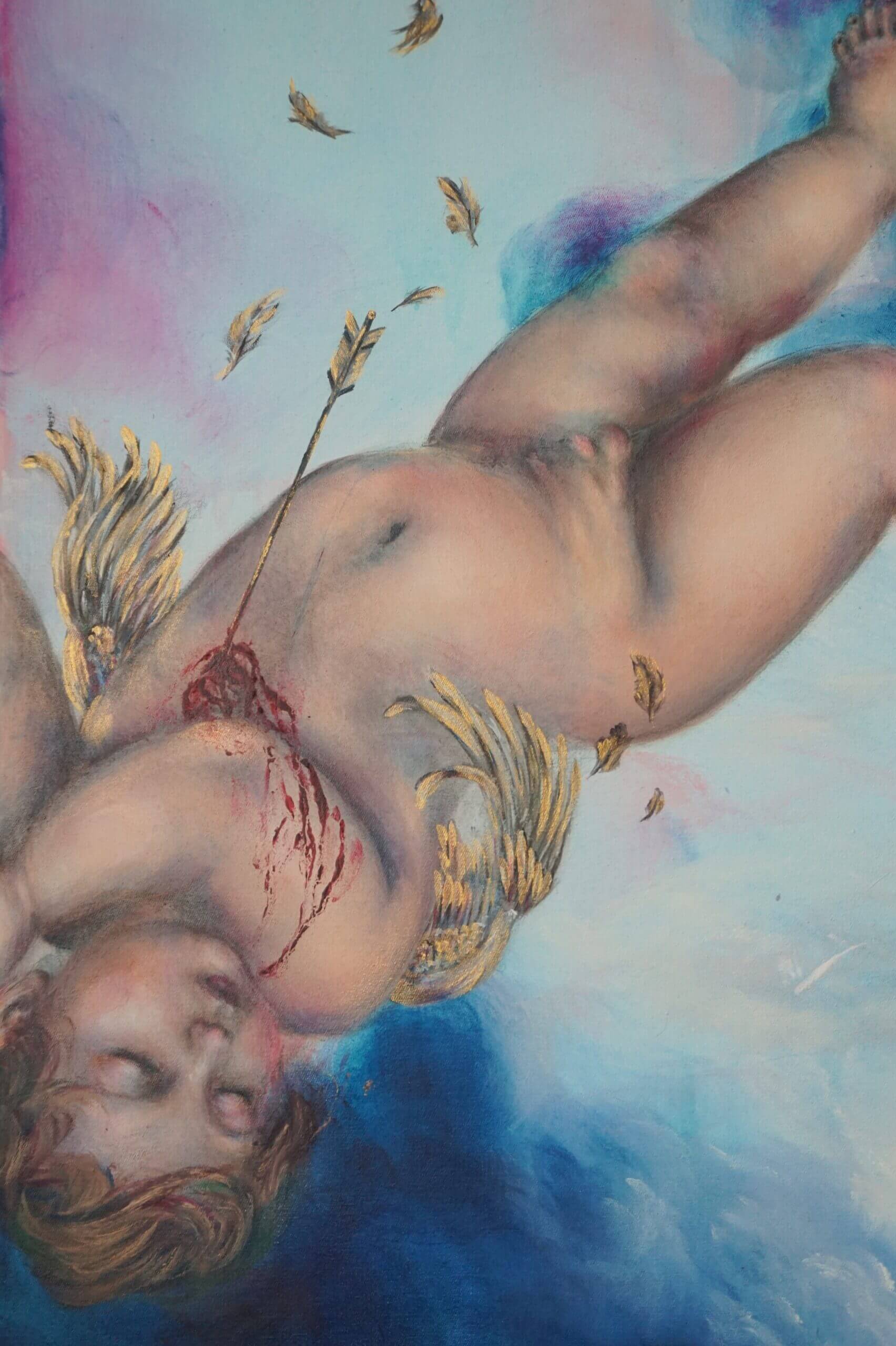 Téma obrazu se zaměřuje na mytologické a figurativní prvky a zároveň se zabývá otázkami morálky, pádů a vzestupů. Postava s křídly může představovat anděla, který čelí výzvám nebo následkům svých činů. Tento motiv vyvolává zamyšlení nad lidskou přirozeností a duchovním vývojem.