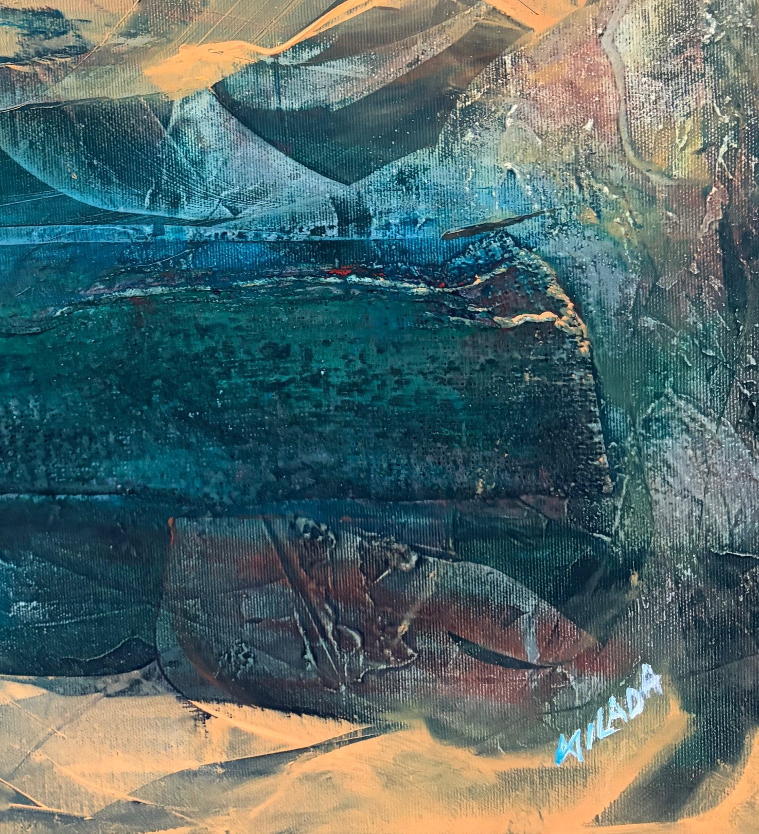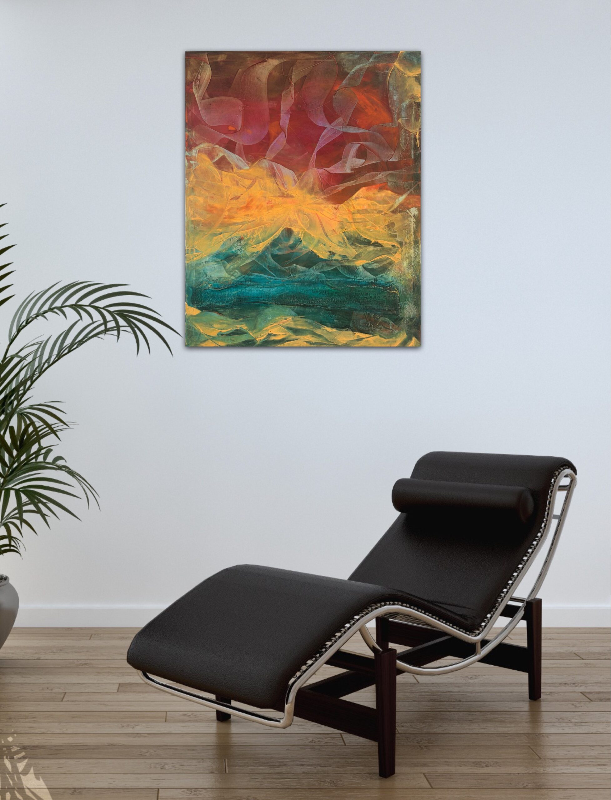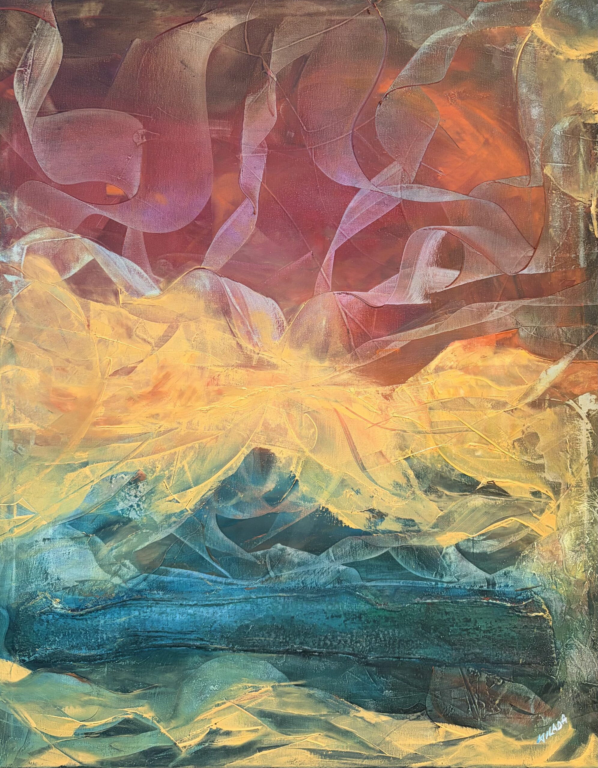 Obraz zachycuje okamžik vnitřního napětí těsně před rozhodnutím. Vrstvené barevné plochy otevírají prostor mezi protiklady. Setkává se zde impuls s úvahou, tlak s tichem. Světelný střed obrazu naznačuje bod zlomu. V tomto bodě ještě nic není jisté, ale všechny možnosti zůstávají otevřené.
