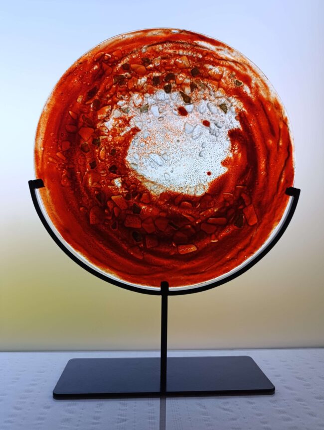 Tento kruhový objekt vznikl technikou tavení skla (fusing). Vrstvy skla se pod vlivem vysoké teploty spojí do jednoho celku. „Rubín“ vyniká sytě červenou barvou, kterou ještě zvýrazňuje použití pravého 24karátového zlata. Zlaté prvky dodávají dílu luxusní nádech a vytvářejí fascinující hru světla.