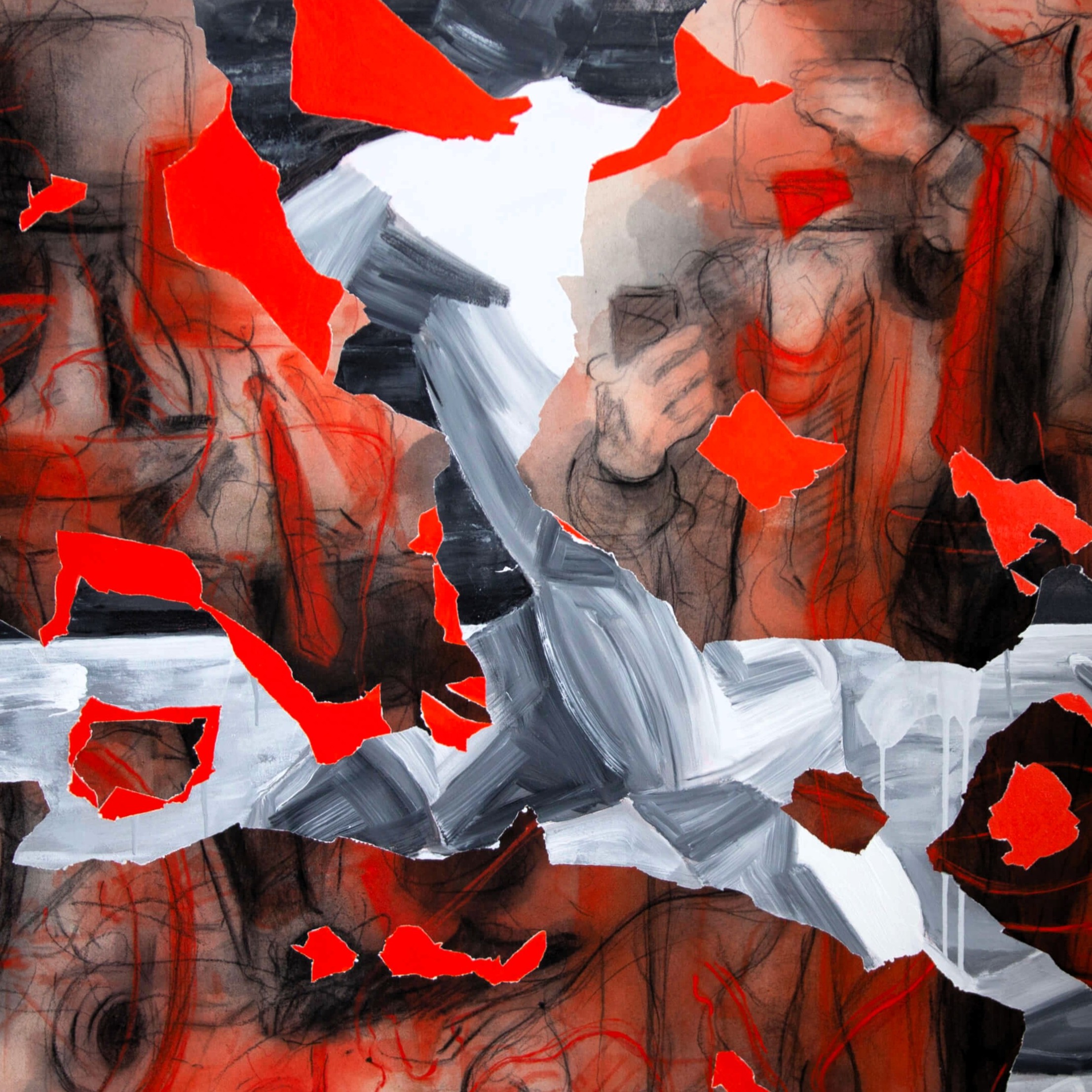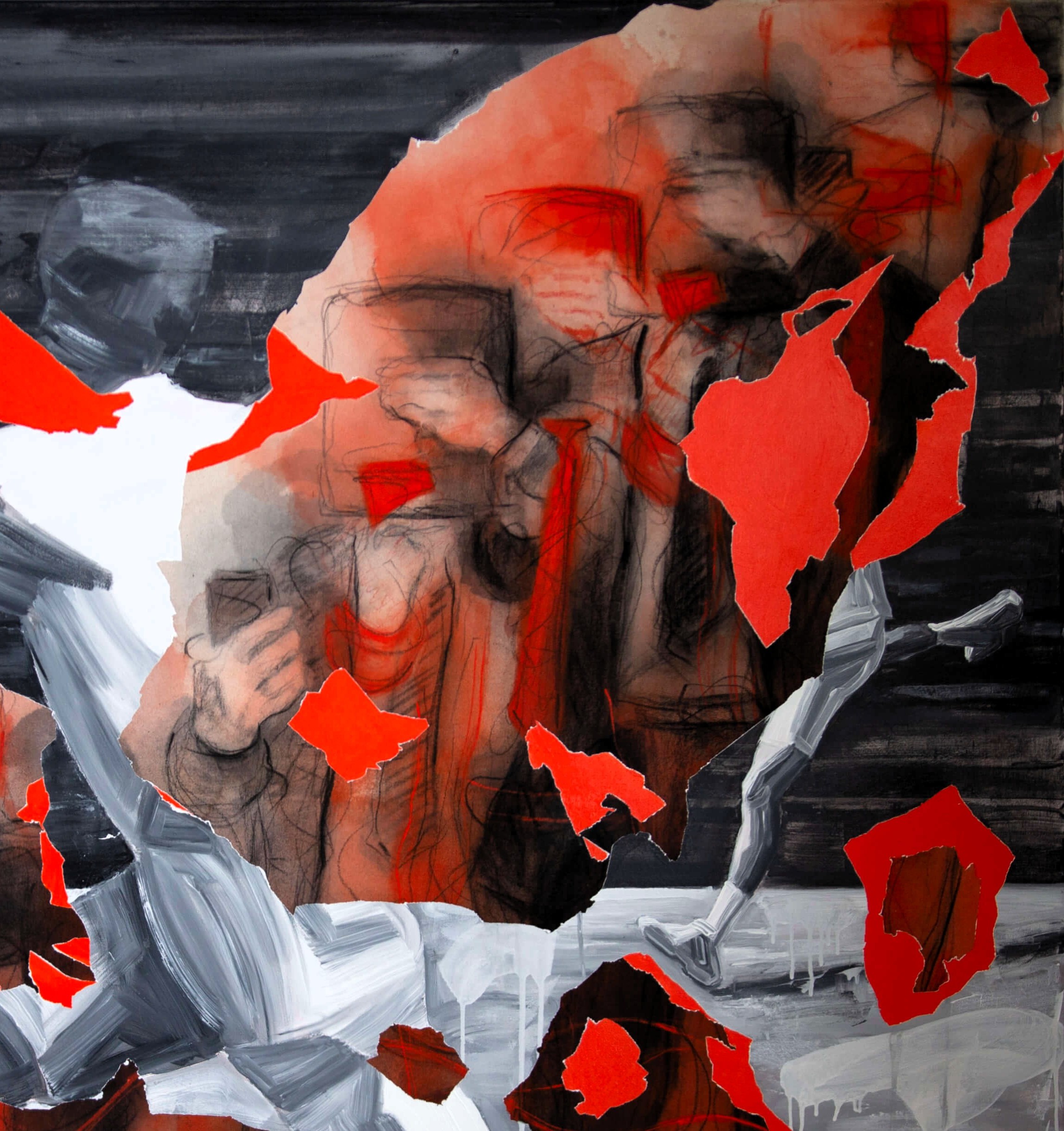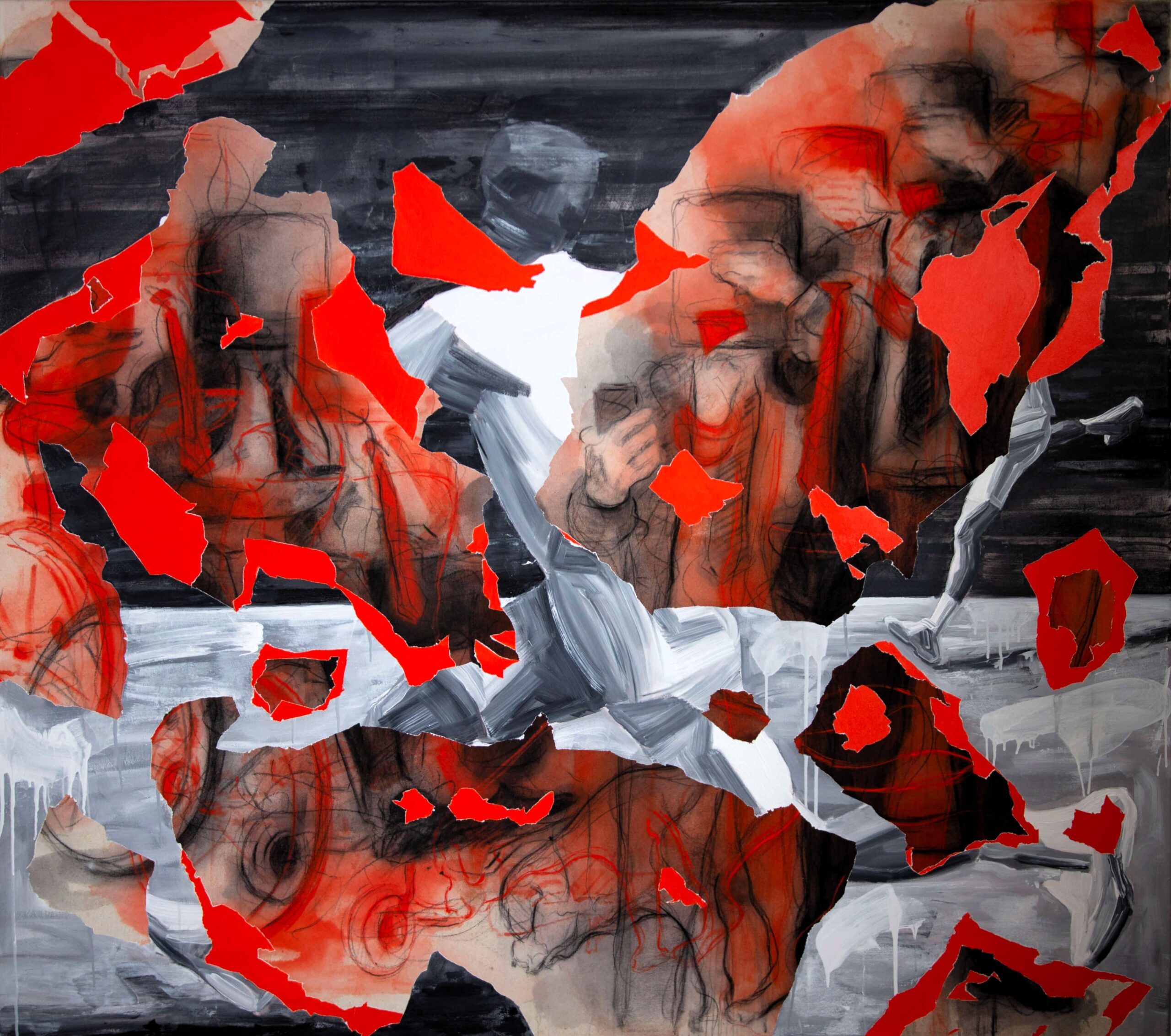 Trhliny v zářivě červené barvě vyvolávají pocit surové agresivity. Připomínají otevřené rány, které se objeví na těle bytosti ve chvíli, kdy ji zasáhne bolest, utrpení nebo nečekaný úder. Z těchto ran vytéká život, síla a energie. Divák cítí, že krev, která se ztrácí, představuje metaforu vyprchávající životní vitality. Červená barva zároveň symbolizuje oheň, vášeň, bolest i nezlomnou energii, která se navzdory všemu odmítá zcela vytratit.