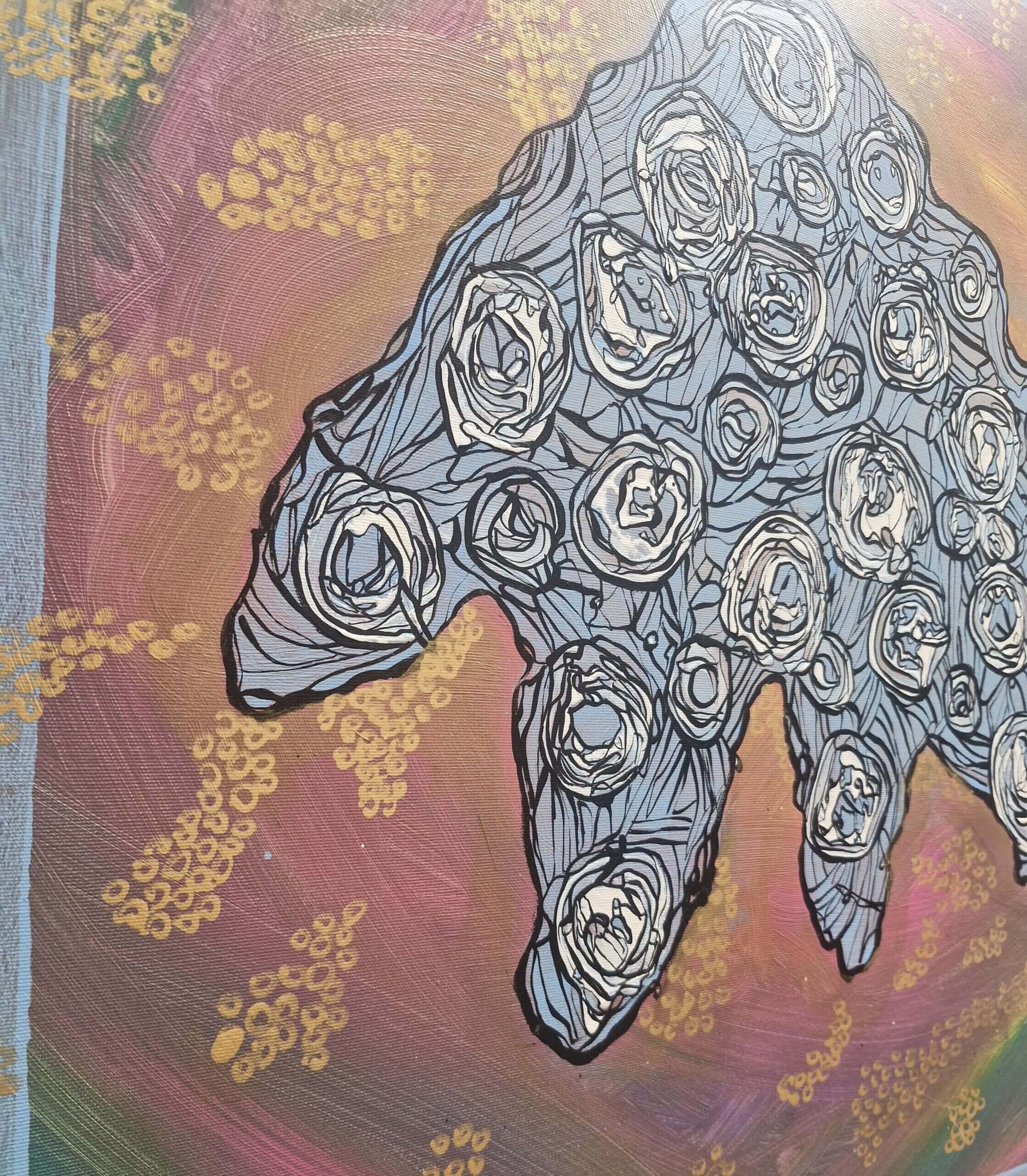 Obraz propojuje geometrické a organické prvky, vytváří pocit pohody, hravosti a rovnováhy, a zároveň vybízí diváka k objevování spojitostí mezi jednotlivými částmi. Světlé a živé barvy působí jako vizuální povzbuzení a připomínka, že radost lze nalézt i v těch nejmenších „buňkách“ našeho každodenního života.