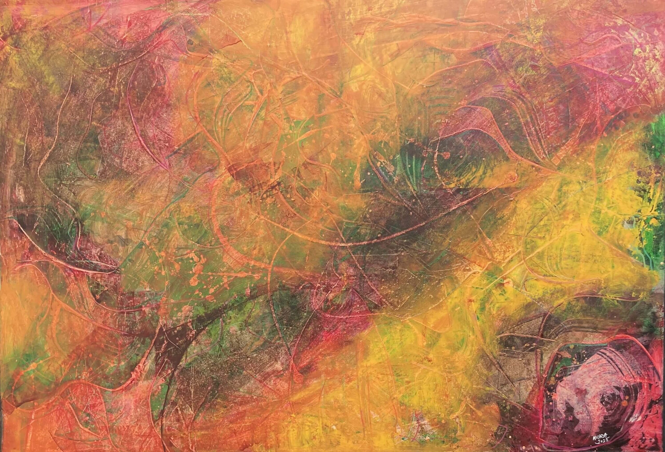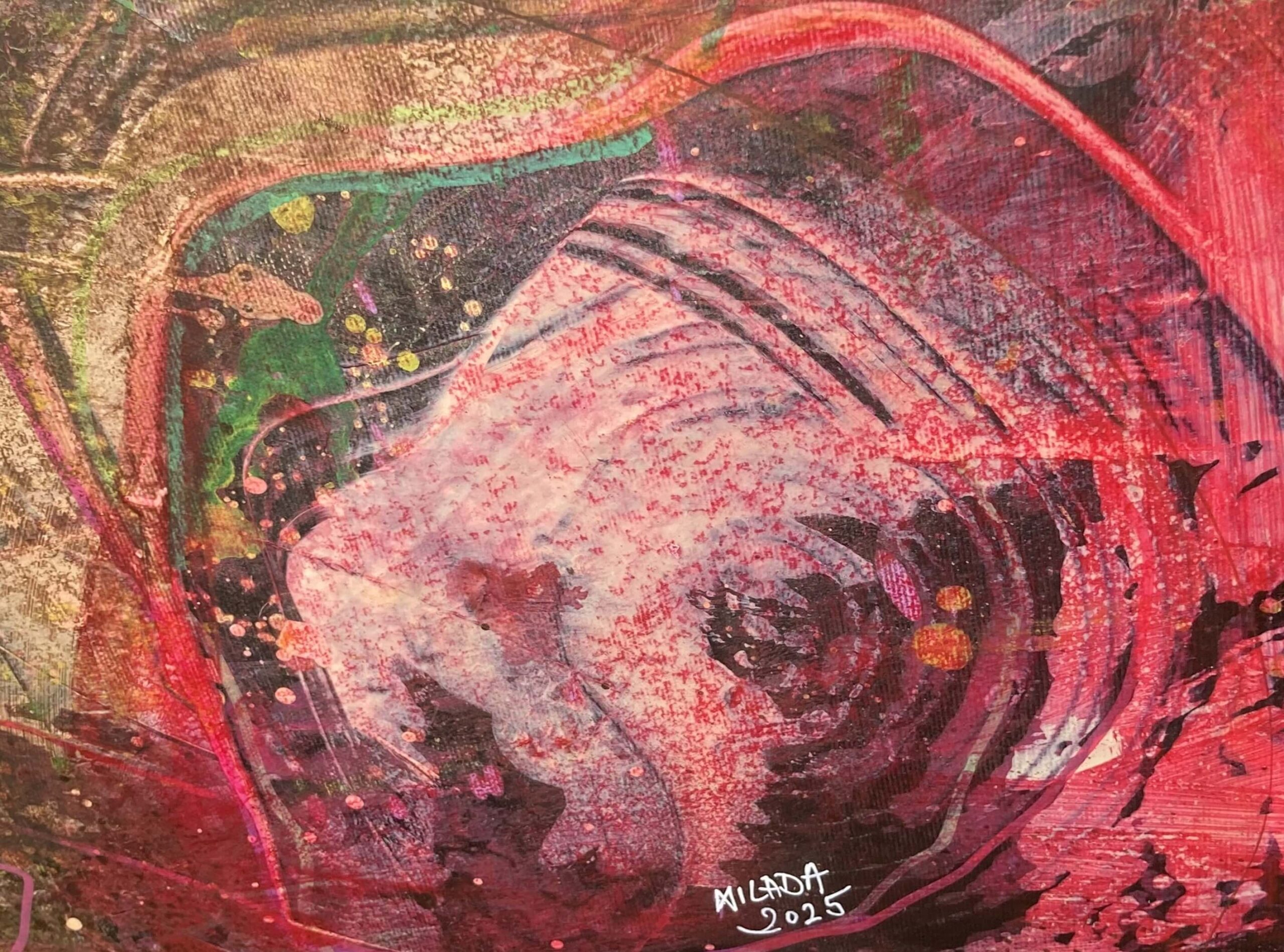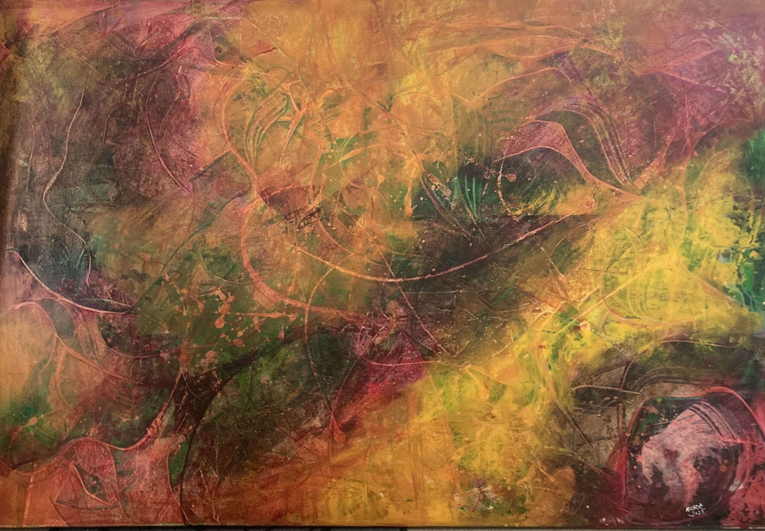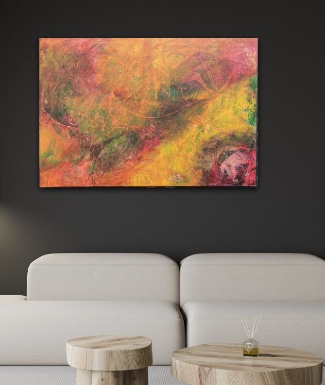 Obraz zve diváka, aby se ponořil do pulzujícího rytmu barev, vnímal jej nejen očima, ale i vnitřním pocitem. Je to meditace o životě, síle emocí a neviditelné energii, která nás spojuje s lidmi i s celou přírodou.