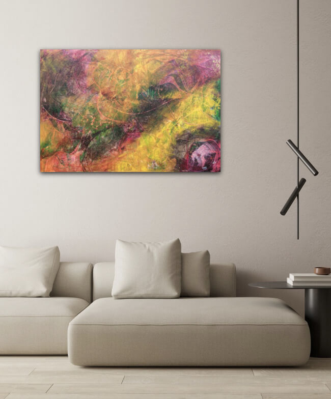„Vital Energy II“ je vizuální oslavou životní síly, která proudí v každém z nás. Pulzující barvy se rozlévají po plátně v dynamických vrstvách a vytvářejí dojem pohybu i neustále proměnlivého rytmu.
