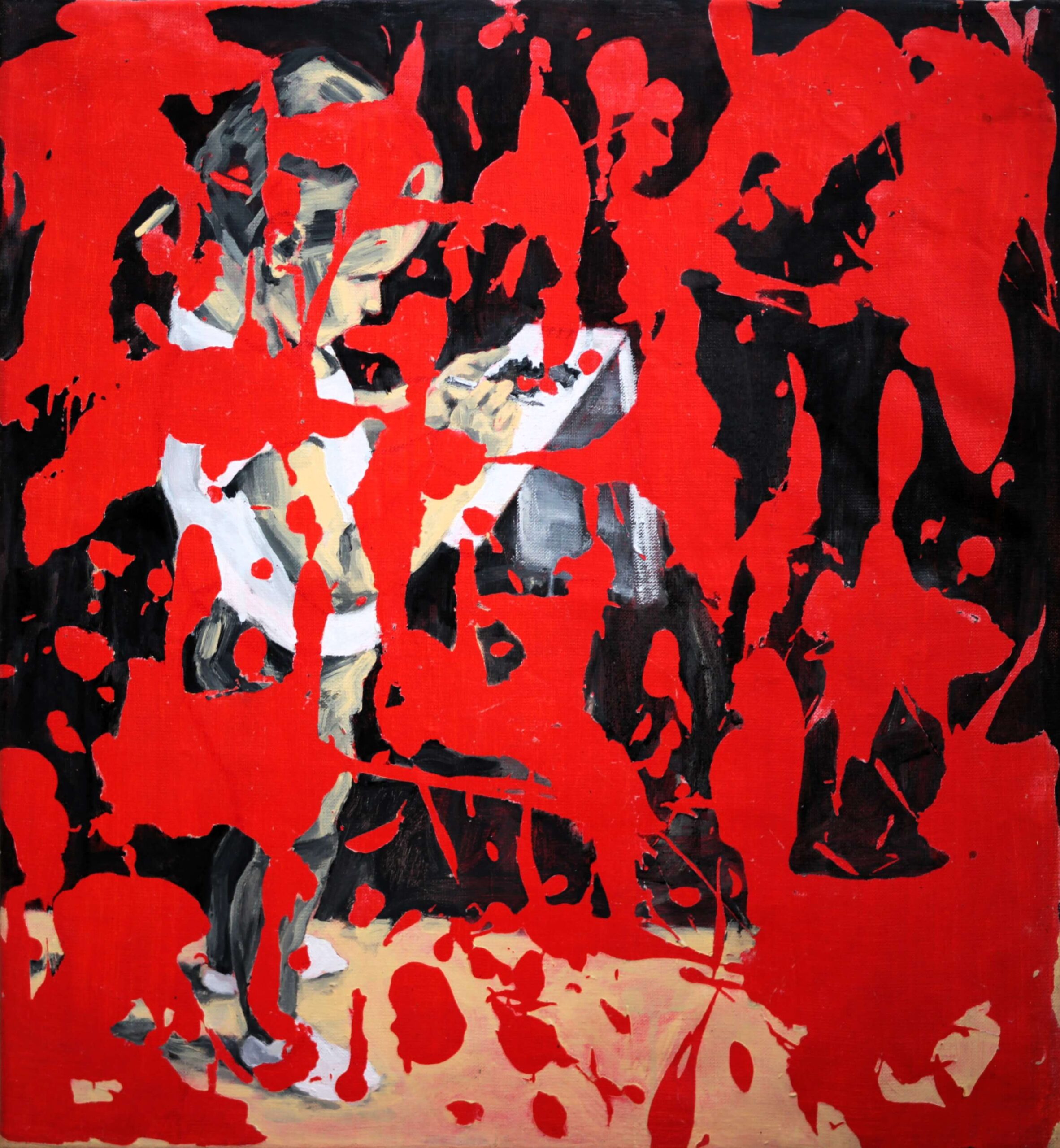 Červená barva rozprostřená přes dívku může naznačovat negativní síly nebo vnější vlivy, které na ni působí, nepřekrývá však celou kompozici, což vytváří vizuální rovnováhu a pocit, že dítě má nad svým prostředím kontrolu. Celé dílo kombinuje jemnost a křehkost postavy s dynamikou barevných zásahů, čímž vzniká napětí mezi nevinností a vnějšími vlivy.