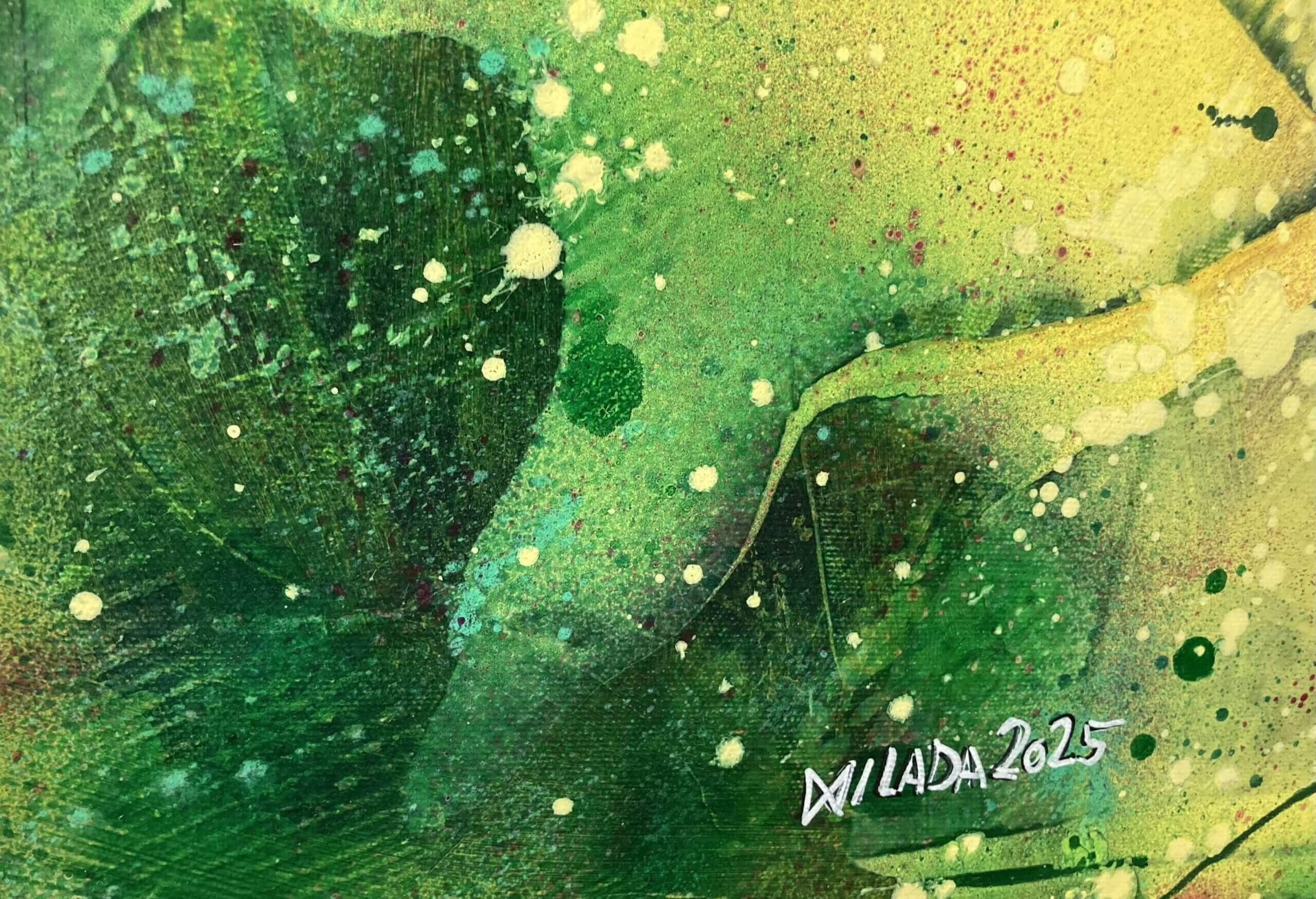 Kompozice obsahuje neviditelný rytmus, jemné větvení tahů a barevných vrstev, které nabízejí meditaci. Tento vizuální puls oslovuje psychiku diváka. Vystavení obrazu bez rámu umožňuje volný kontakt s prostorem. Obraz harmonicky sjednocuje stěnu, světlo a pohyb diváka. Jeho rozměry poskytují výrazný umělecký akcent v každé místnosti.